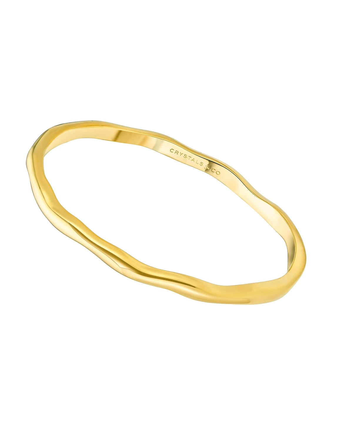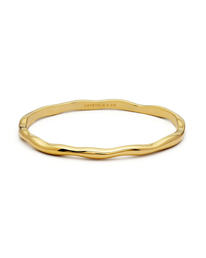 This Gold Full Wave Bangle by Crystals and Co is a gorgeous and impactful accessory. Its solid, high-shine gold-plated design creates a fluid, wave-like texture that makes a maximum impact. This bangle is versatile enough to be worn alone for a bold statement or added to an existing collection to elevate the entire look. Its durable and radiant finish is perfect for daily wear.