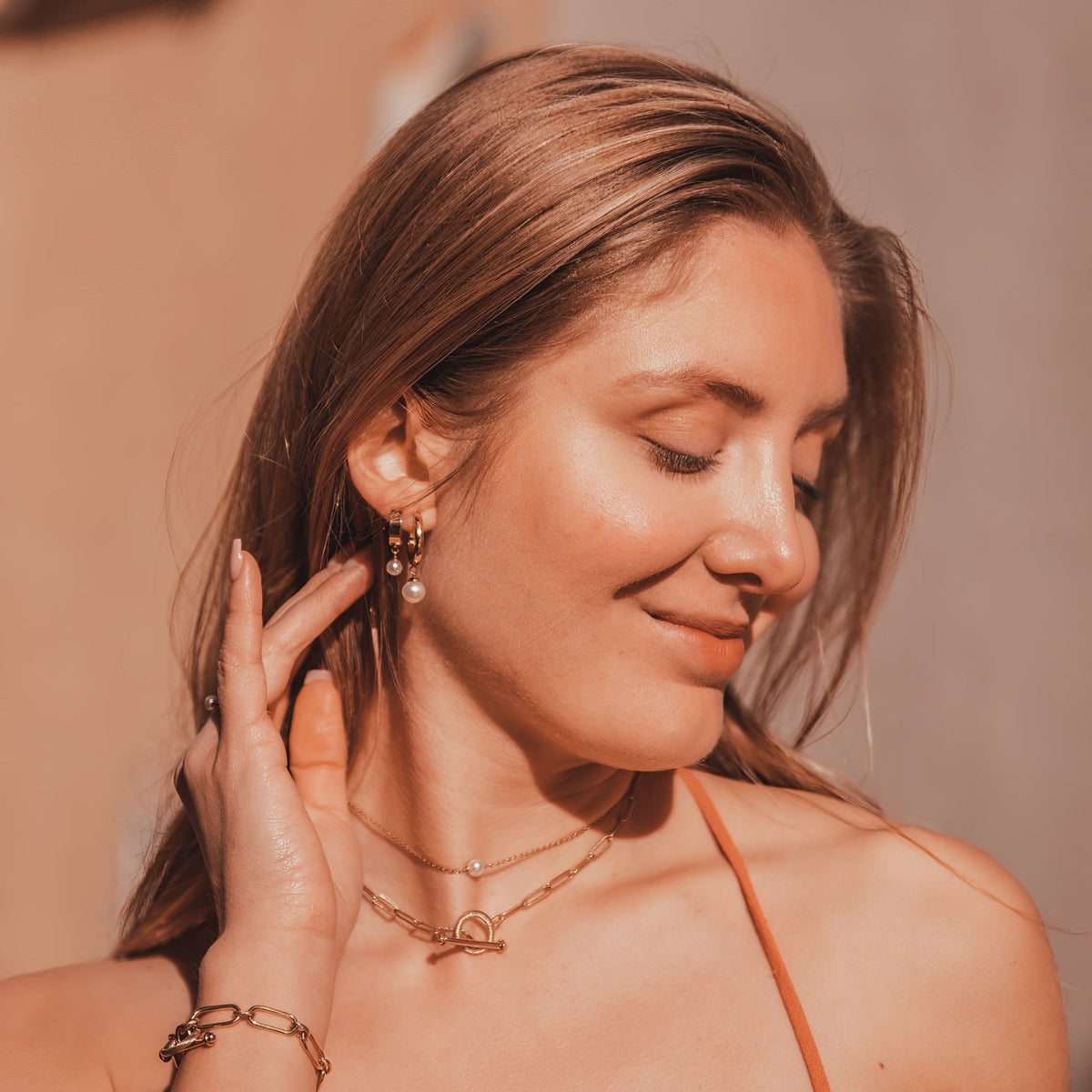 The Timeless Pearl Huggies Earrings by Me30 are a small and exquisite design with easy-to-wear buckles, offering a casual and relaxed vibe for everyday wear. The earrings are made from durable 316L stainless steel with a thick coat of 18k gold vacuum plating. They are set with handcrafted synthetic pearls and are hypoallergenic.