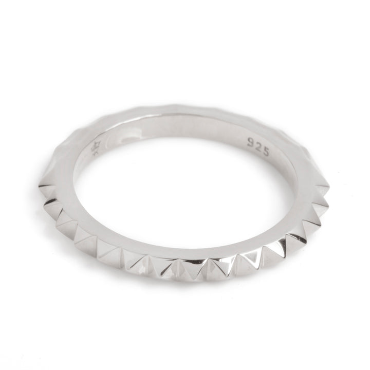 An Sterling Silver ring studded with pyramids representing the armour-like scales of the crocodile. Ideal for stacking.