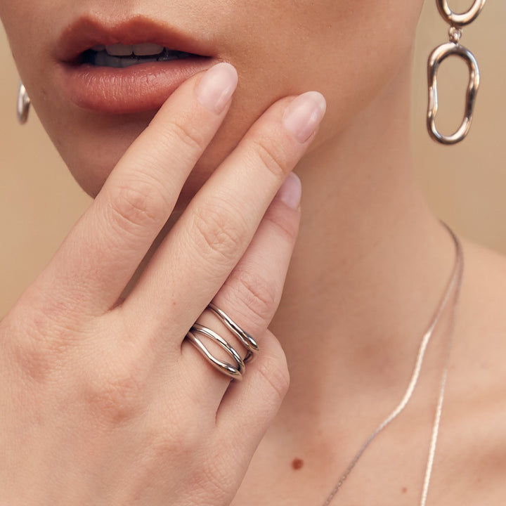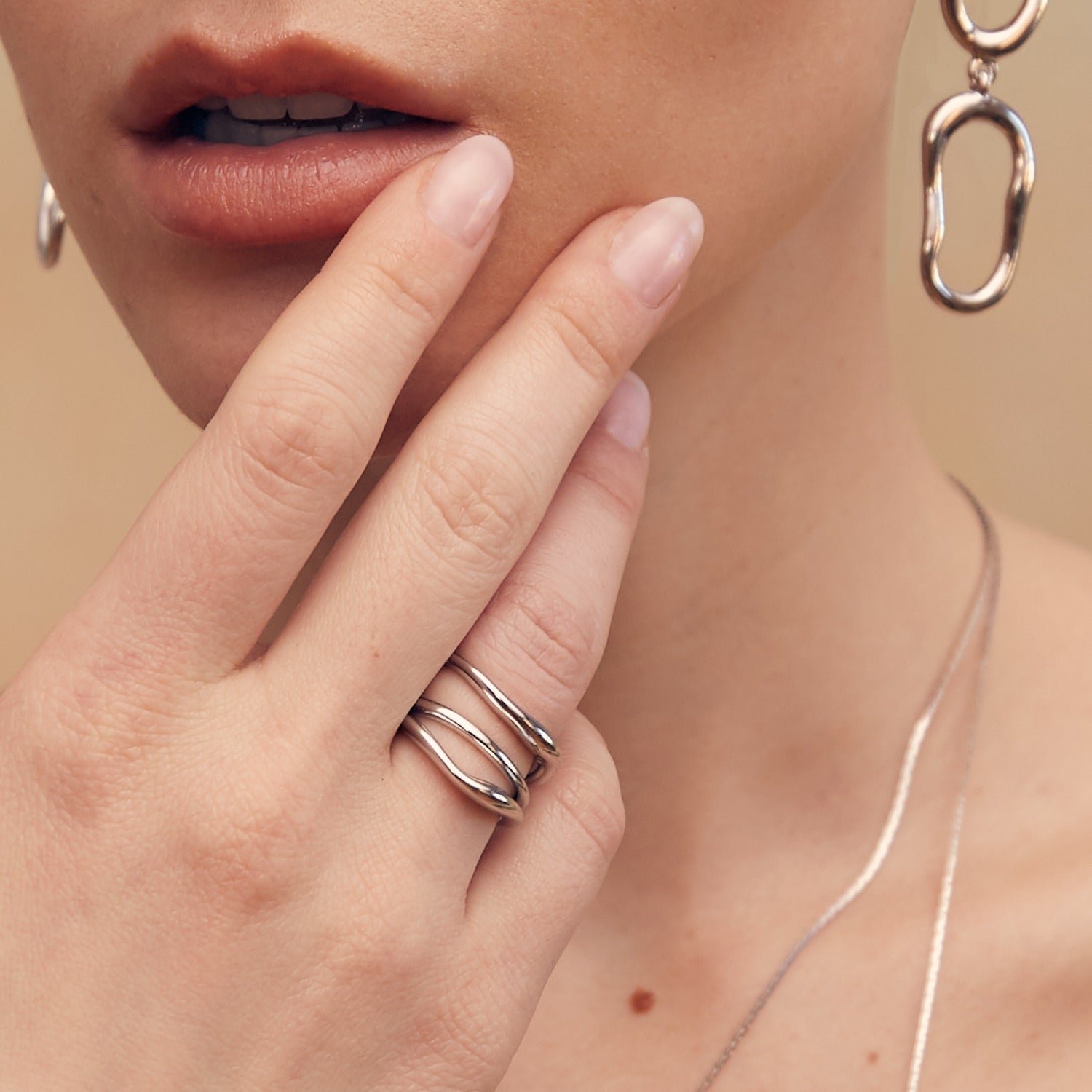 Rio - The sun beats down; the air feels vibrant but still. Ocean salt on your skin, a sweetness in the air. The heat energizes you, makes you feel alive. And like the rhythm of the music, you're unstoppable. THIS is the energy within the Rio Ring. With a subtle molten wave throughout, they beg to be stacked together, BUT are so super chic solo as well. All BIKO pieces are plated in 14k gold or rhodium, over brass. They do not tarnish or cause discolouration on the skin. All earring posts are surgical stainless steel, and hypoallergenic.