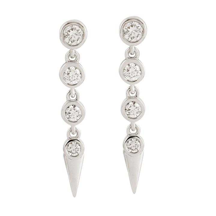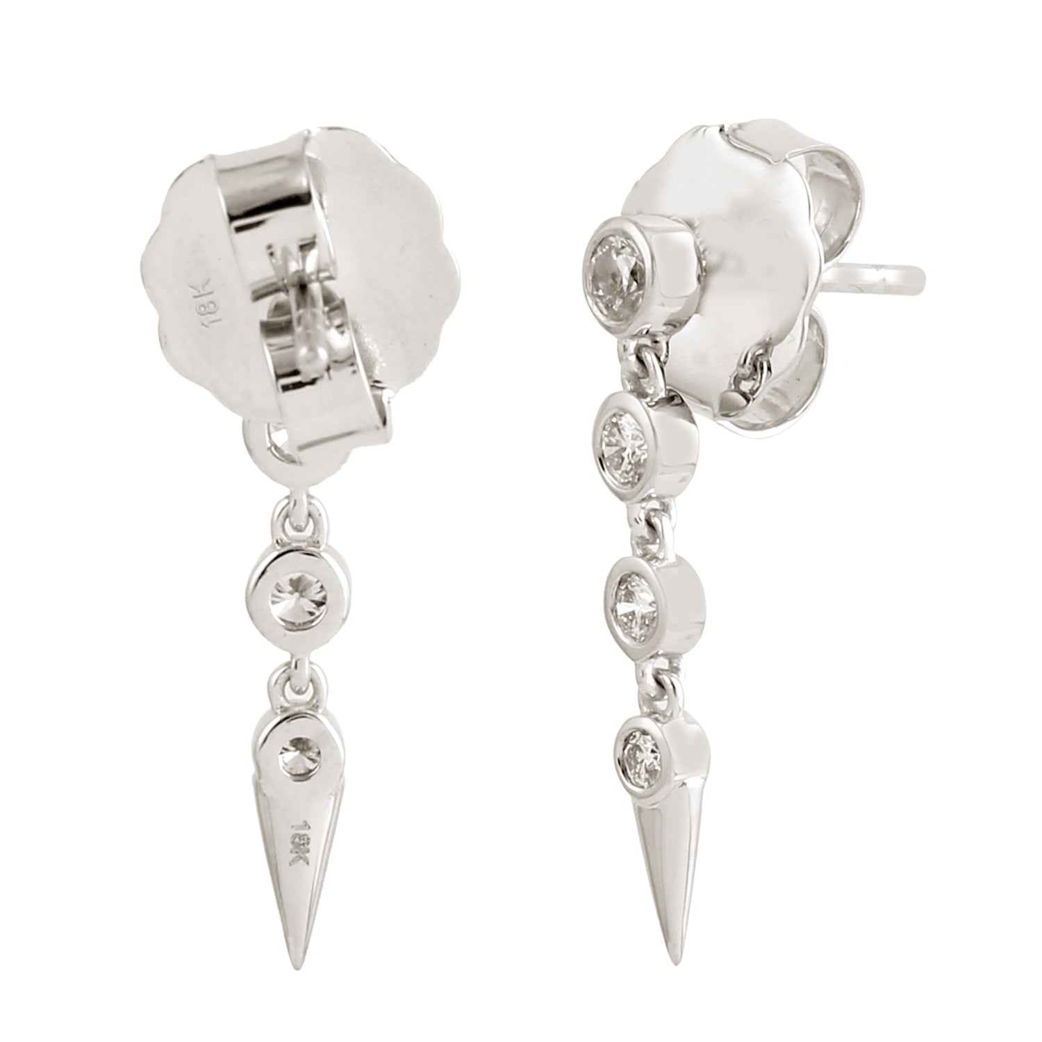 Natural Bezel Set Diamond 18k White Gold Spike Design Dangle Earrings