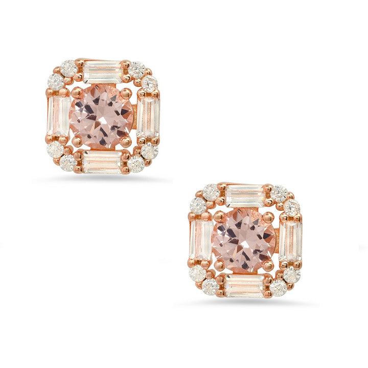 Rose Gold Morganite Halo Stud Earrings