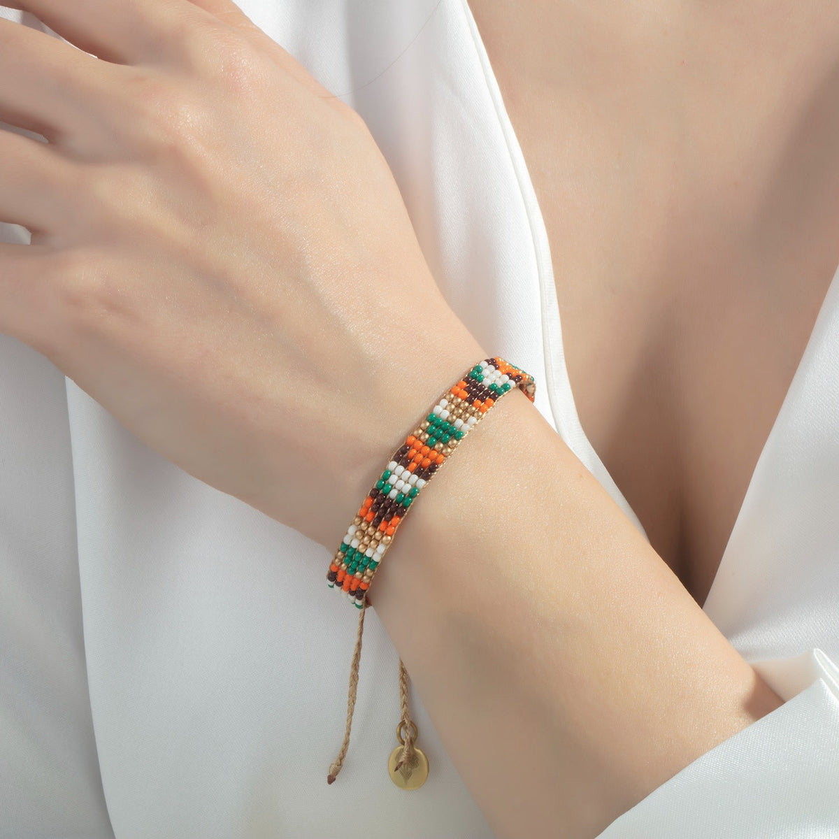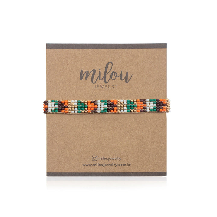 This Charlotte Beaded Bracelet by Milou Jewelry is a light and comfortable accessory. It is handwoven with tiny, high-quality glass beads, creating a smooth and delicate design. The beautiful yellow and orange colors add a vibrant touch to your look, making it a cheerful and playful staple. This bracelet is a perfect piece for adding a touch of personality and charm to your everyday style.