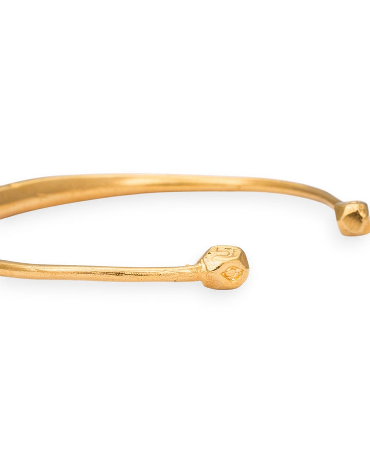 This Textured Bamboo Cuff by Kybele Studio is a minimalist yet organic statement piece that adds a touch of natural elegance to your wrist. Its design, inspired by the unique texture of bamboo, offers a subtle and sophisticated aesthetic. This handcrafted piece is perfect for wearing alone to make a quiet statement or layering with other bracelets for a curated look. Its adjustable design ensures a comfortable fit, making it a versatile and timeless addition to your collection.
