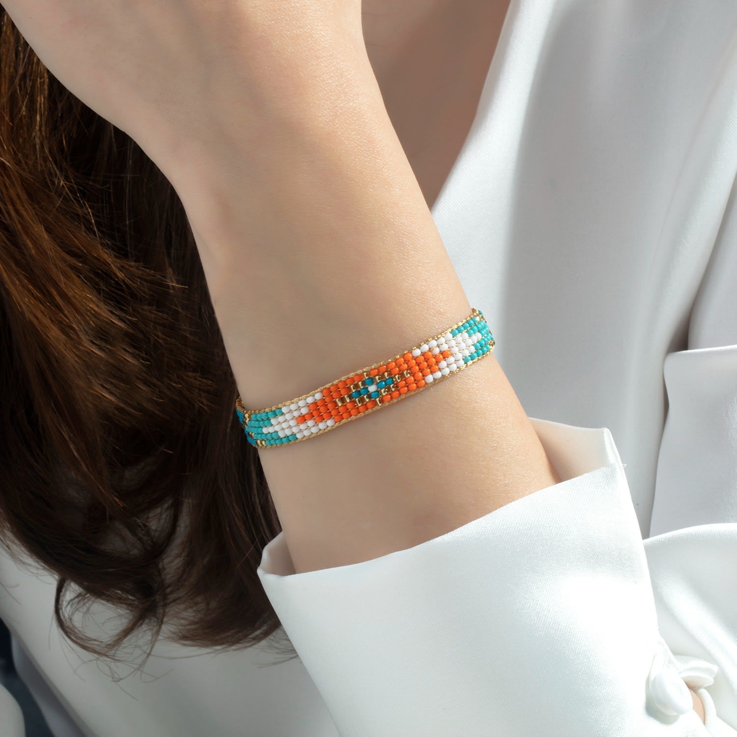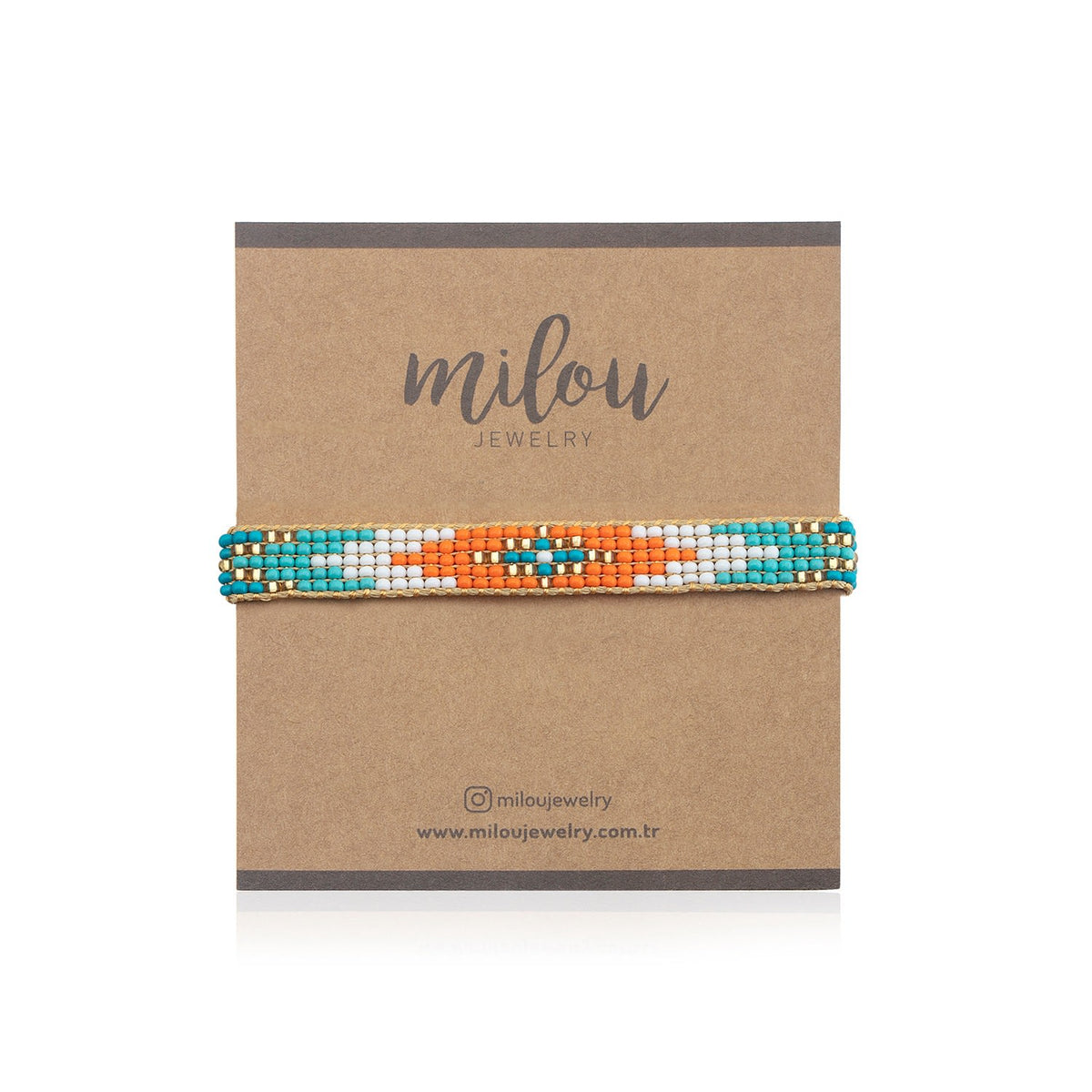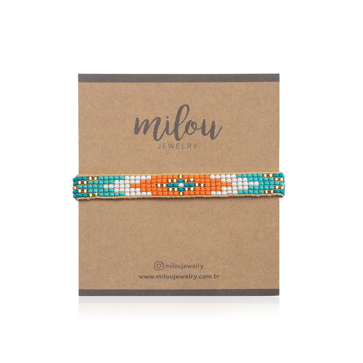 This handwoven bracelet is made from tiny glass beads and comes with a Milou Jewelry box.