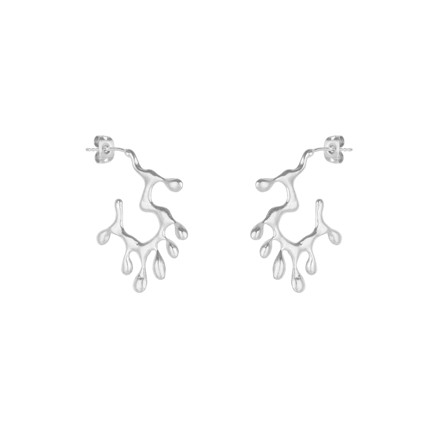 Adorn your ears with our stunning Melting And Dripping Irregular Silver Hoop Earrings! Handcrafted with a unique design, these hoops are sure to make a statement. Made with high-quality silver, they are both elegant and durable. Elevate your style with these one-of-a-kind earrings. Earring Dimensions: 30mm x 26mm