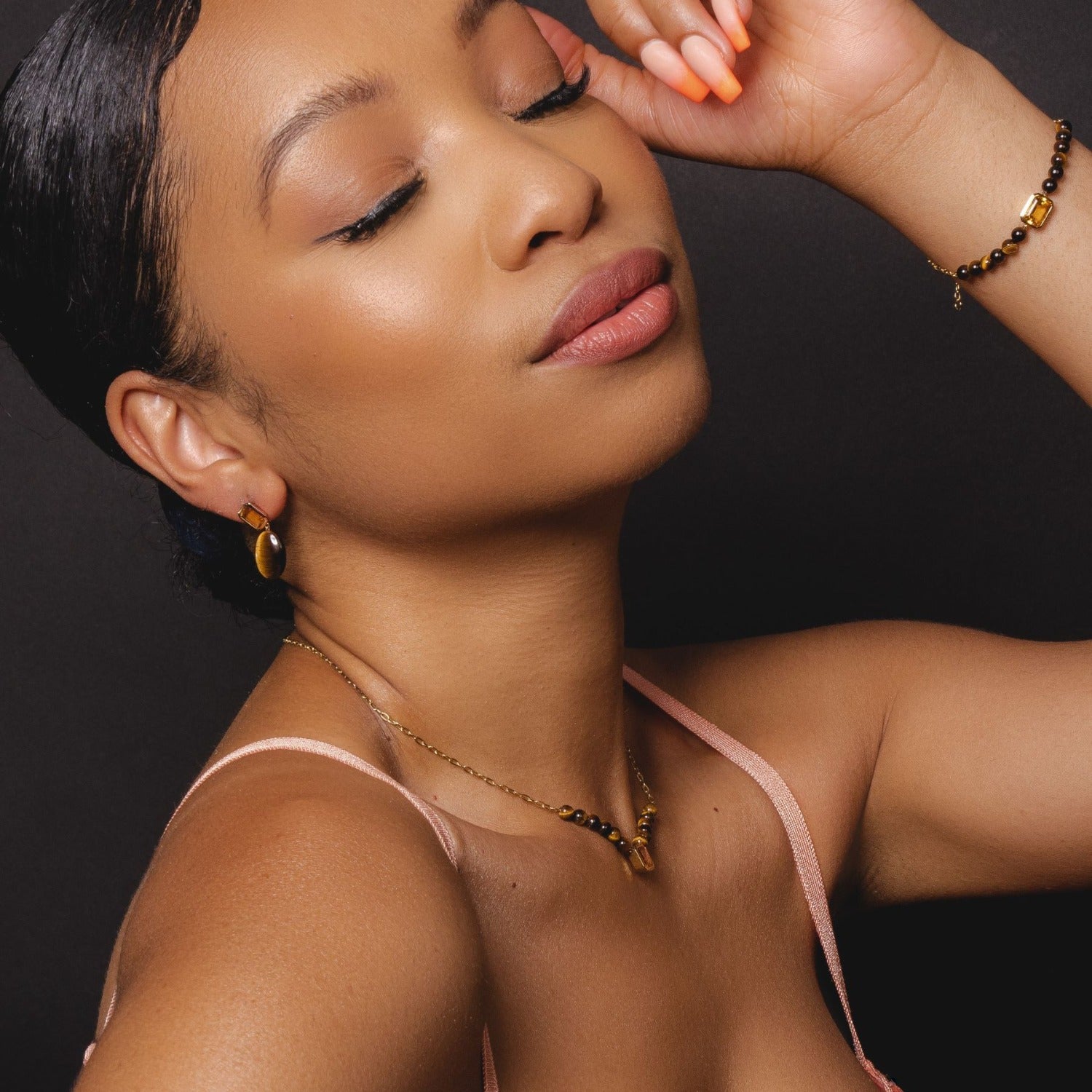 Rose gold plated sterling silver, citrine, tigers eye