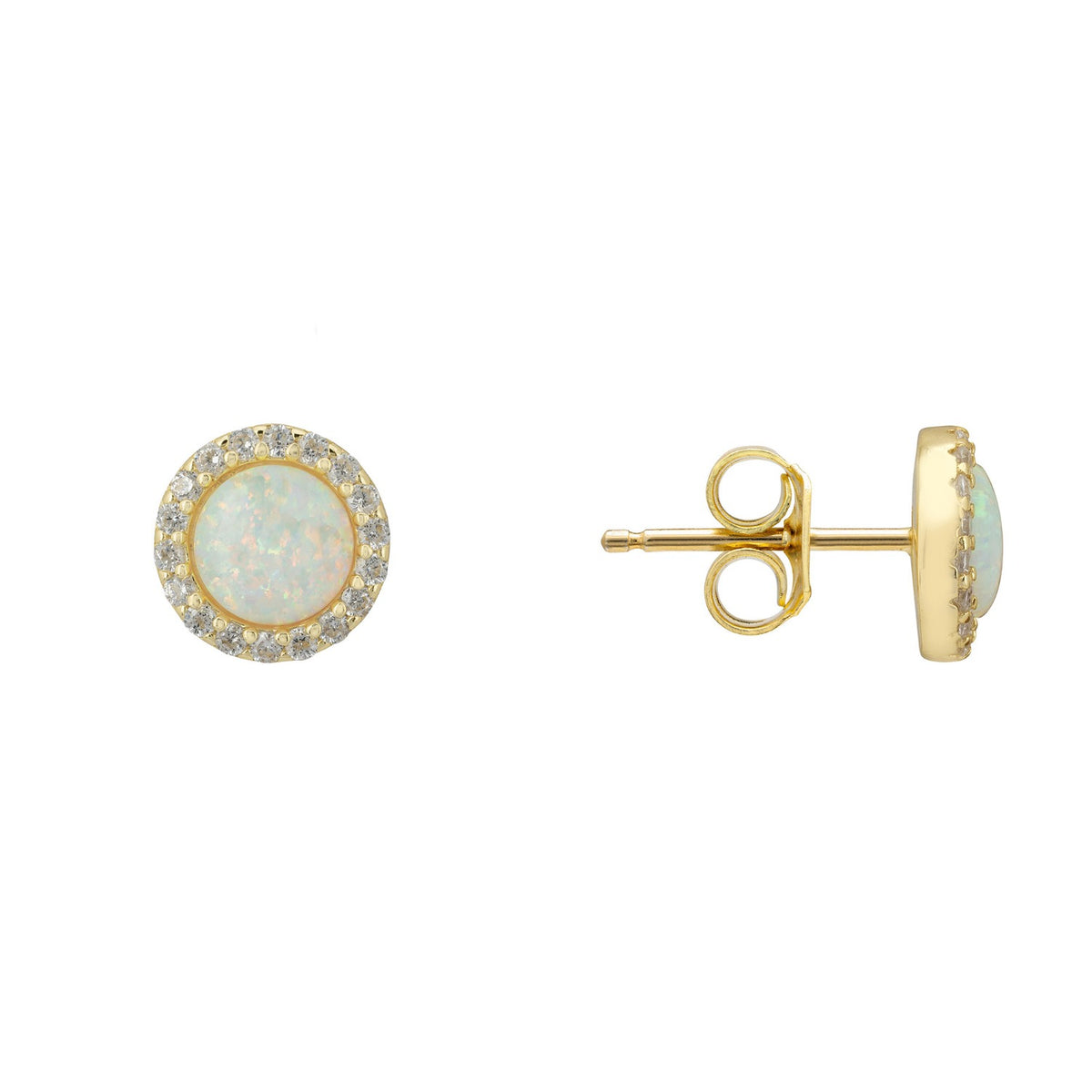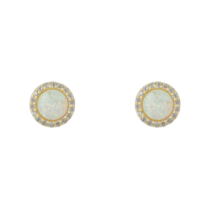 Introducing our Small Sparkling Halo Opal Stud Earrings in Gold - a charming and elegant addition to any jewellery collection. A birthstone for October, Opals in jewellery symbolizes creativity and inspiration, known for its unique play of colour and ability to enhance personal traits and characteristics. At the heart of these studs lies a mesmerizing, iridescent opal, encircled by a radiant halo of cubic zirconia that adds a touch of sparkle.