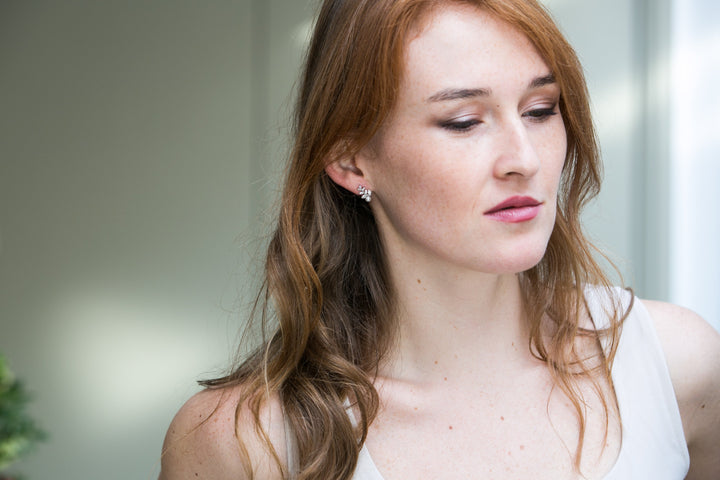 A delicate pair of cultured freshwater pearl stud earrings with cubic zirconia set in an ivy style. A classic pair of earrings with a modern twist. Stylish and contemporary - a definite go-to accessory to be worn day or night, all year round.