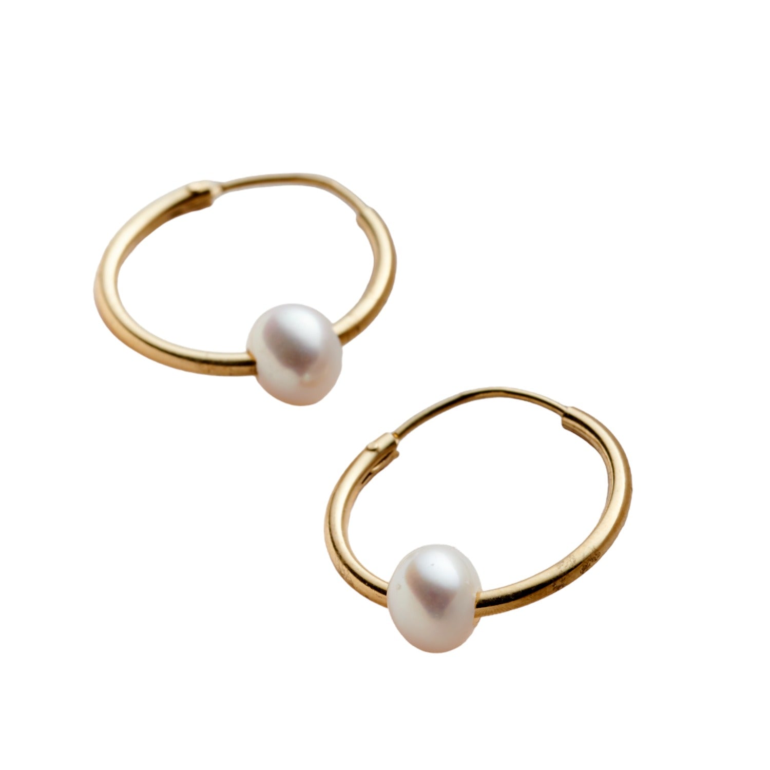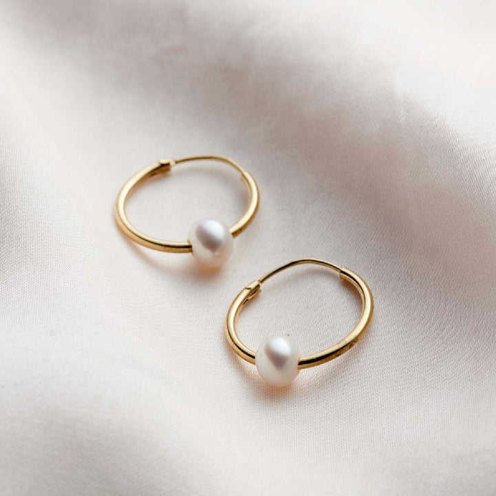 These beautiful 18ct yellow gold plated hoop earrings bring a subtle glow of freshwater pearls to your outfit. The delicate hoops are hand made from 925 Sterling silver then plated in 18ct yellow gold. Classic Pearl Hoop Earrings are easy to wear for both formal and casual occasions, perfect for posh dinners and festive parties!