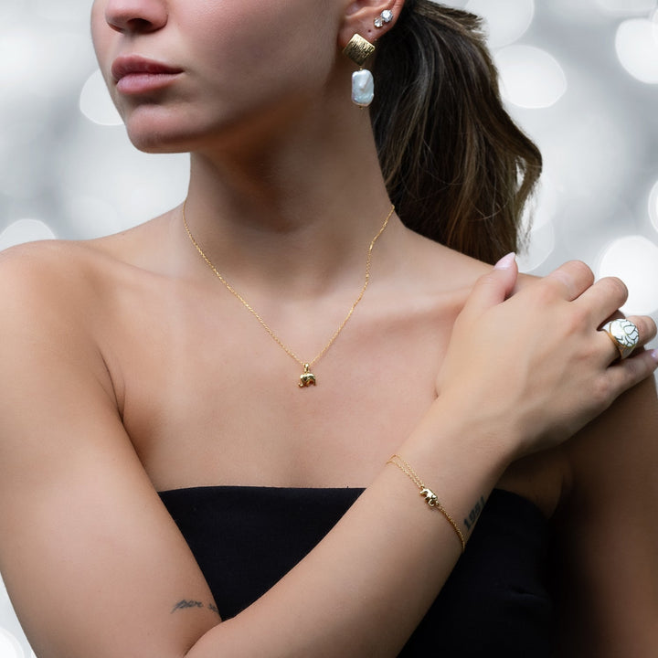 The Pearl & Gold Cleopatra Earrings feature a base of premium brass, adorned with a lavish 18K gold plating that radiates luxury from every angle. With a design that bridges the gap between antiquity and modernity, our Pearl & Gold Cleopatra Earrings are a celebration of grace, allure, and enduring fashion. Dangling gracefully from the golden frame, lustrous pearl stones take center stage. These pearls, renowned for their purity and elegance, add a touch of sophistication to the earrings, ensuring they become a staple in your jewelry collection.