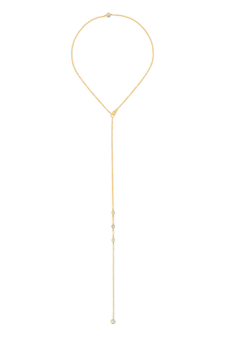 This Hailey Front And Back Gold Chain by Naiia is a versatile and unique accessory. This handcrafted chain is made of 14K gold-filled material and is embellished with bezeled white cubic zirconia. The design is meant to shine no matter how it's styled. Gold-filled jewelry is water-resistant, hypoallergenic, and designed for everyday wear.