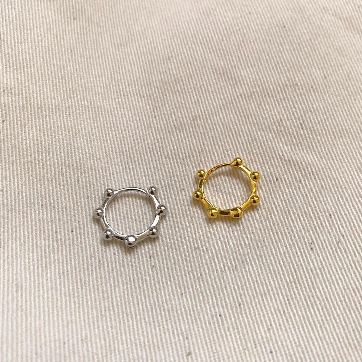 If you have been looking to add something chic and classic to your everyday look, try these Seven Bead Hoop Earrings. Designed in a recycled 925 sterling silver metal, it beautifully highlights a hoop design embellished with lustrous and glossy beaded detailing all over, adding a playful touch to your style. It has a hinged-back lock for a comfy, secure, or worry-free wear and take-off experience. These hoop earrings come in silver, rose-gold, and gold colors that make you sparkle from day to night. Style it solo, or stack it with an ear cuff, beaded studs, or chain necklaces for a perfect dainty look. Moreover, it goes pretty well with denim jeans & a contrasting crop top, a formal fancy maxi, and pop colorful outfits.