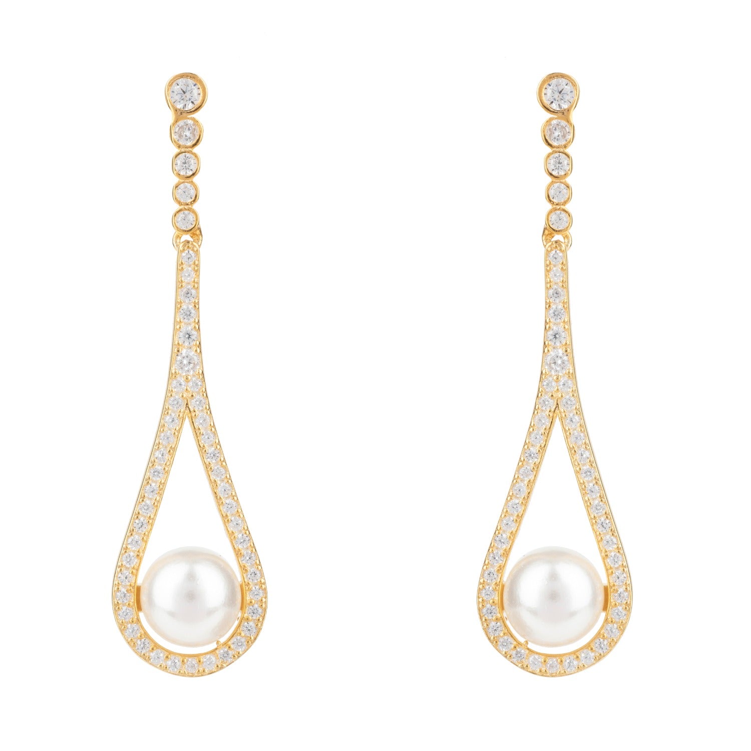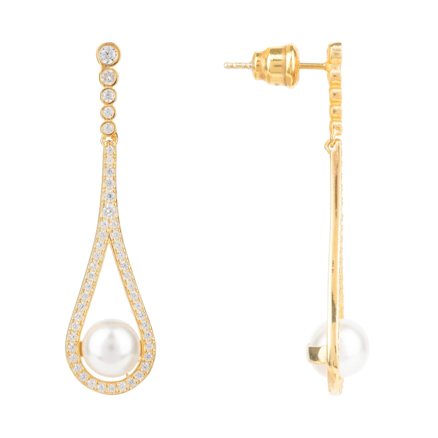 Cradled Pearl Drop Earrings Gold