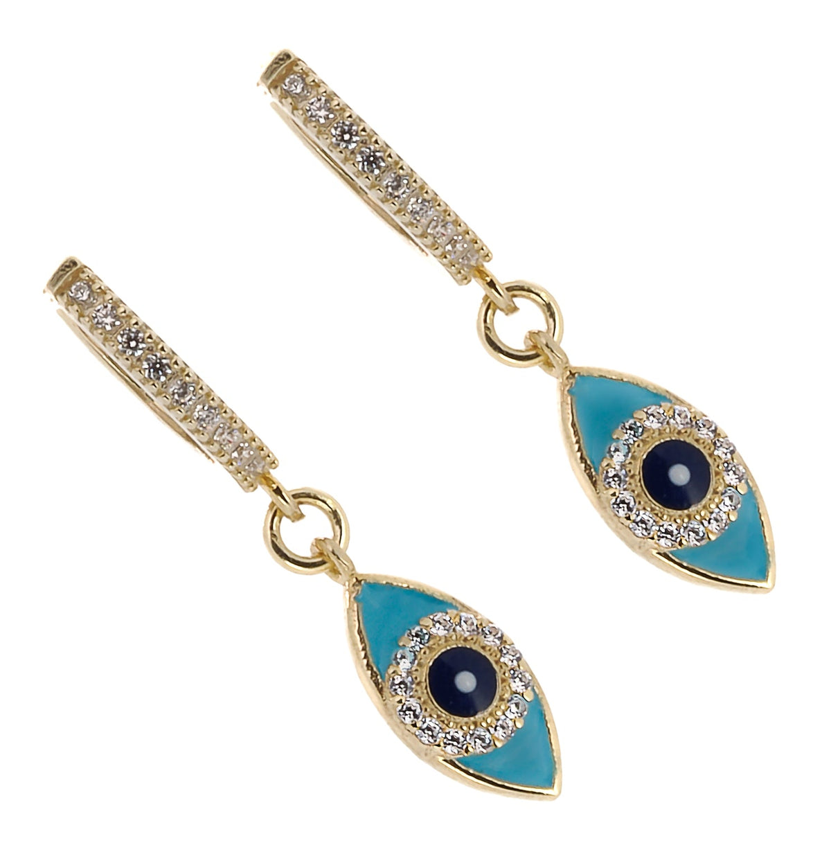 Turquoise Sparkly Evil Eye Gold Plated Earrings Gold