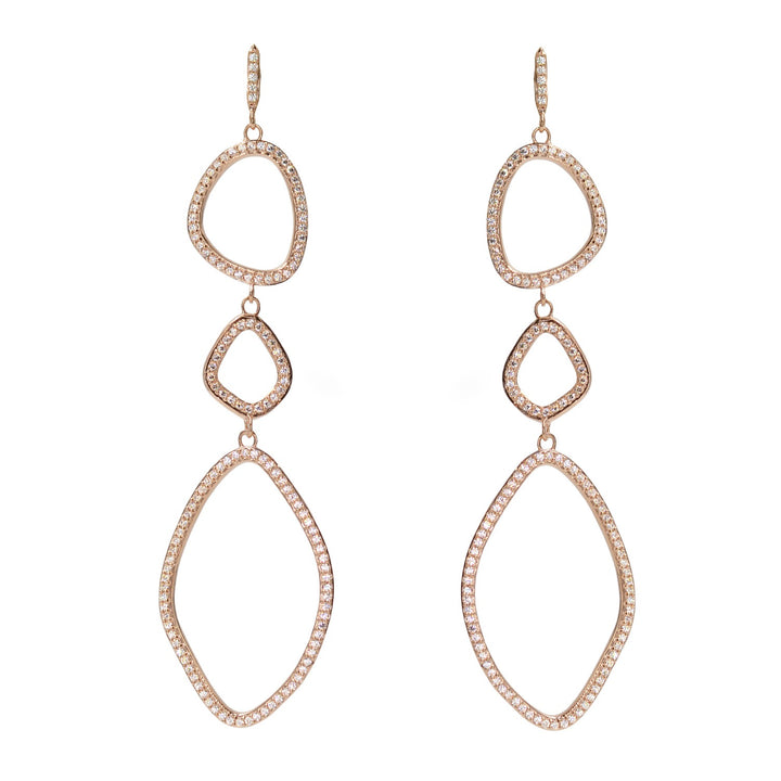 These Triple Organic Shape Dangle Earrings are always a stunner! They dangle just right and have a little curve to them for a whimsical three-dimensional effect. Dress them up for an evening night out, or pair them with your favorite jeans. No matter how you style them, they are sure to shine! Set in Sterling Silver with high-quality crystal pavé. Every sale supports survivors of campus sexual assault through our nonprofit Restore Dignity, providing rent, medical, and tuition assistance.