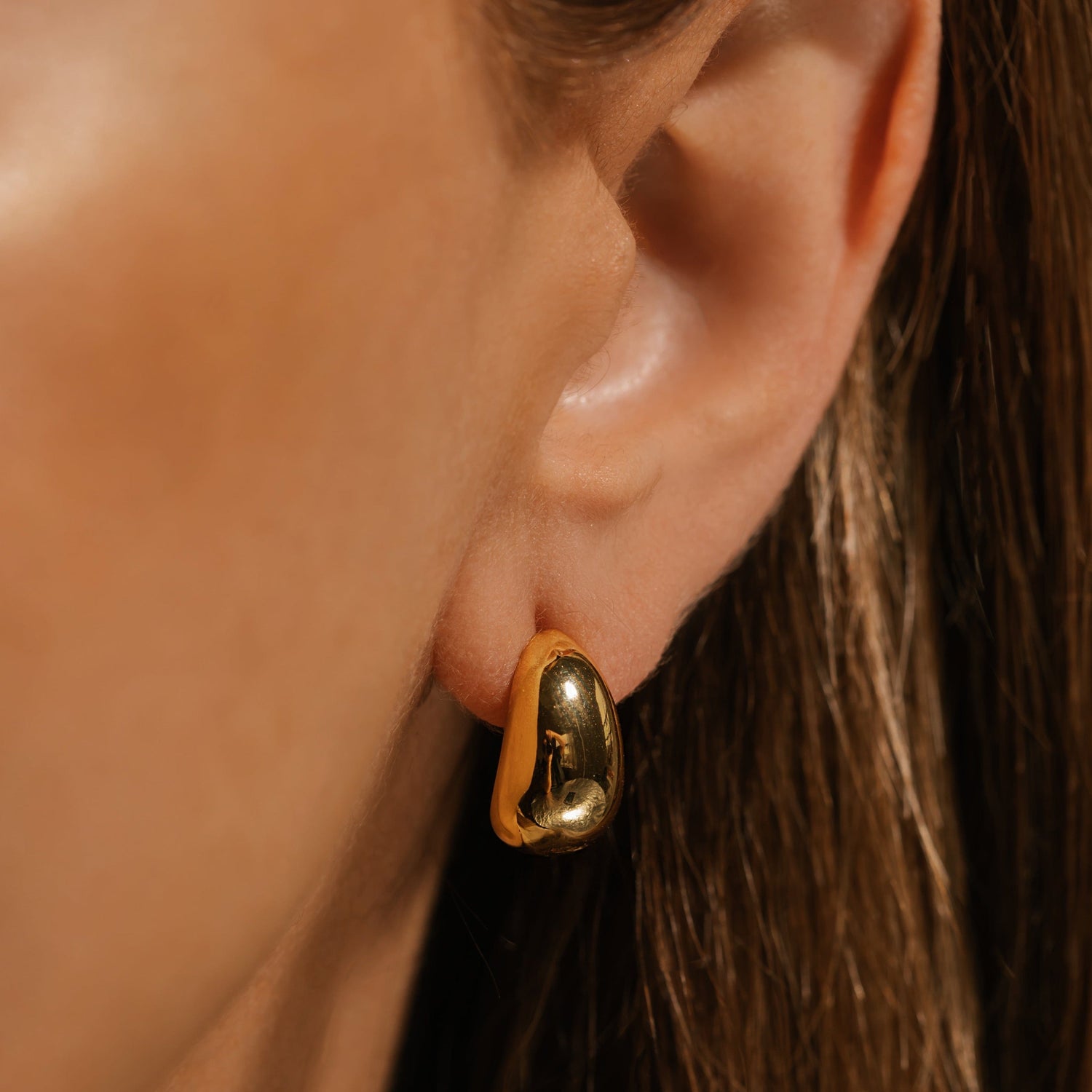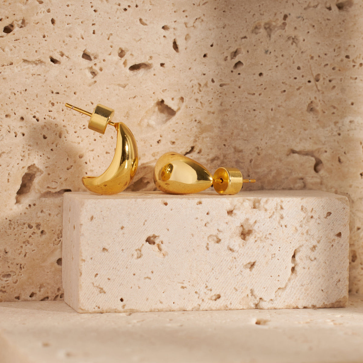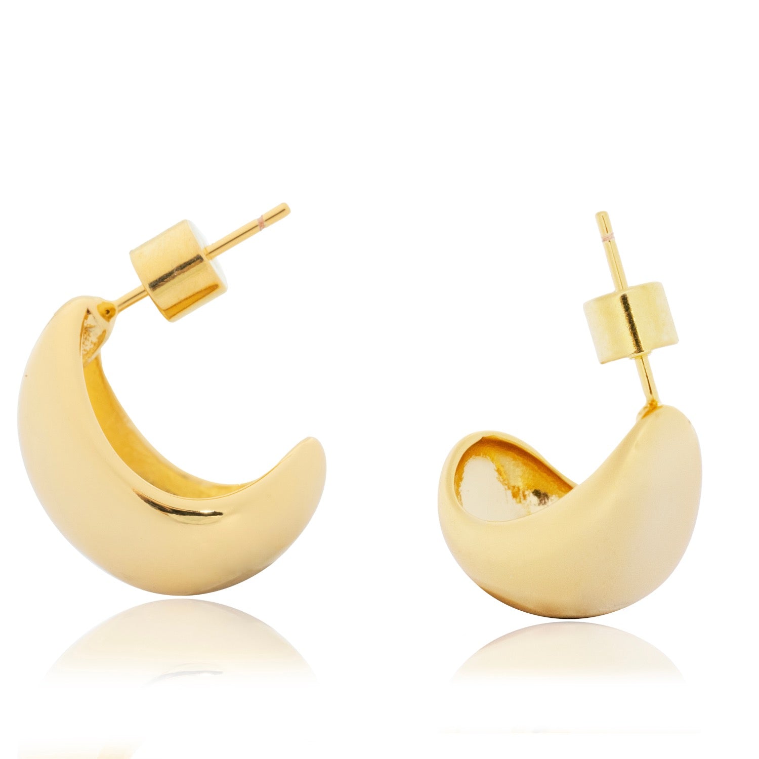This mini open hoop earring has the same sophisticated elegance as the original. It features a bold dome shape that curves perfectly around the earlove with a sleek and smooth gold finish. Wear it alone or stacked with another Perfect Hoop for a comfortable and stylish look.