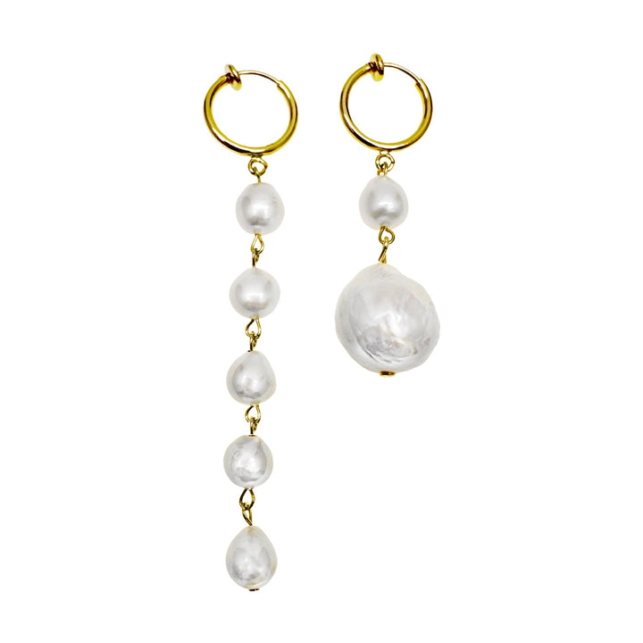 Asymmetric Baroque Pearls Dangle Clip On Earrings