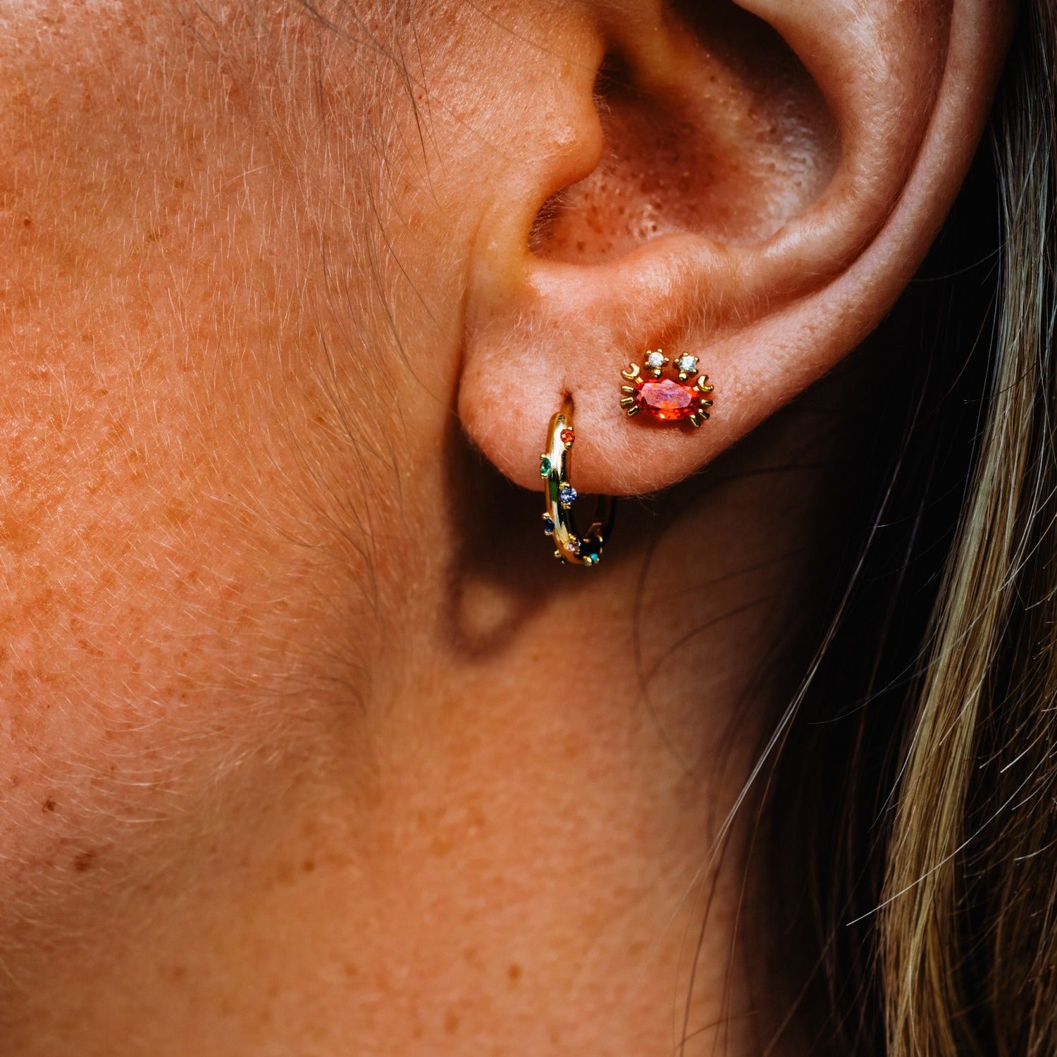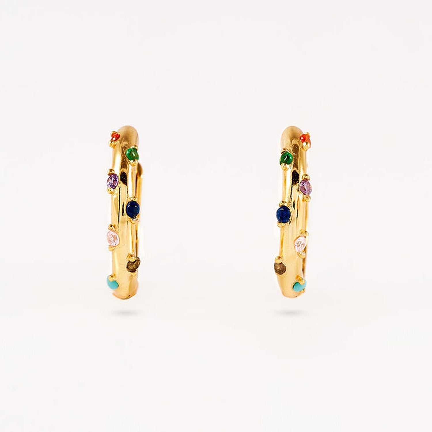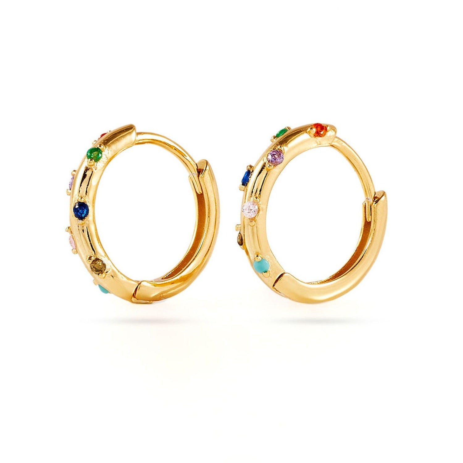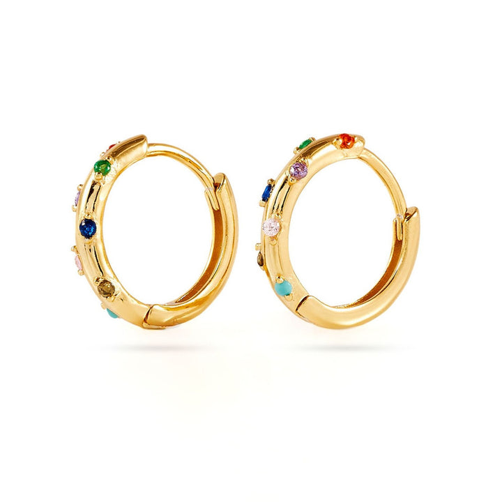 925 sterling silver are 18K gold plated with rainbow coloured cubic zirconia.