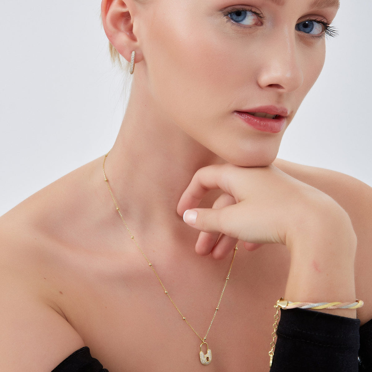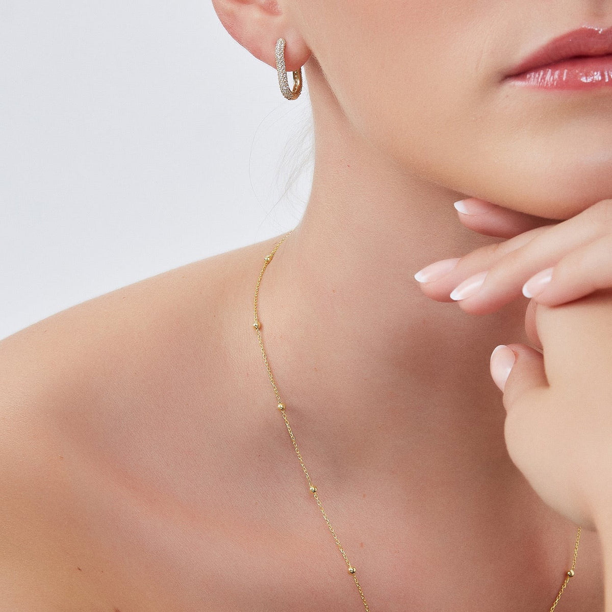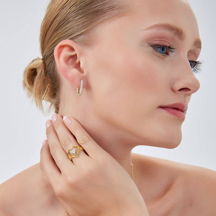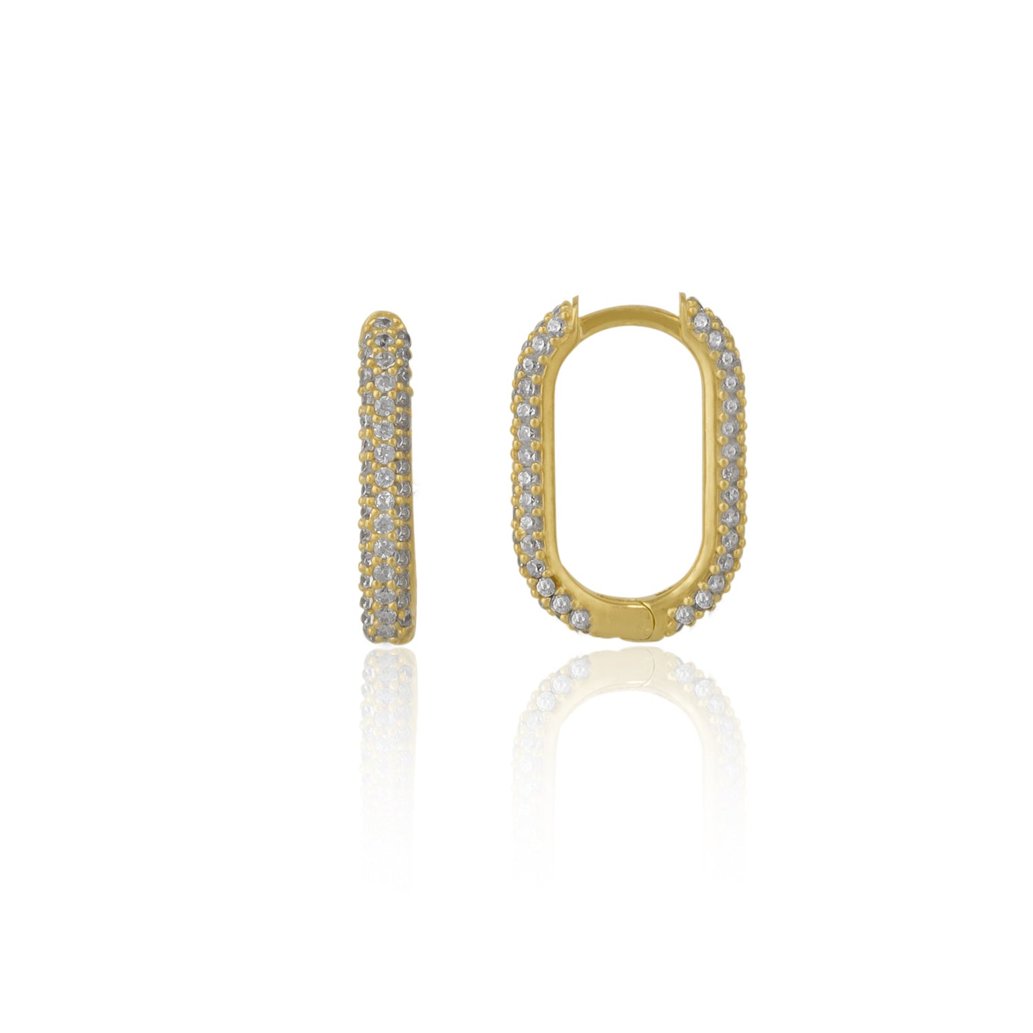 Pave Rectangular Sterling Silver Oval Hoop Earring Gold