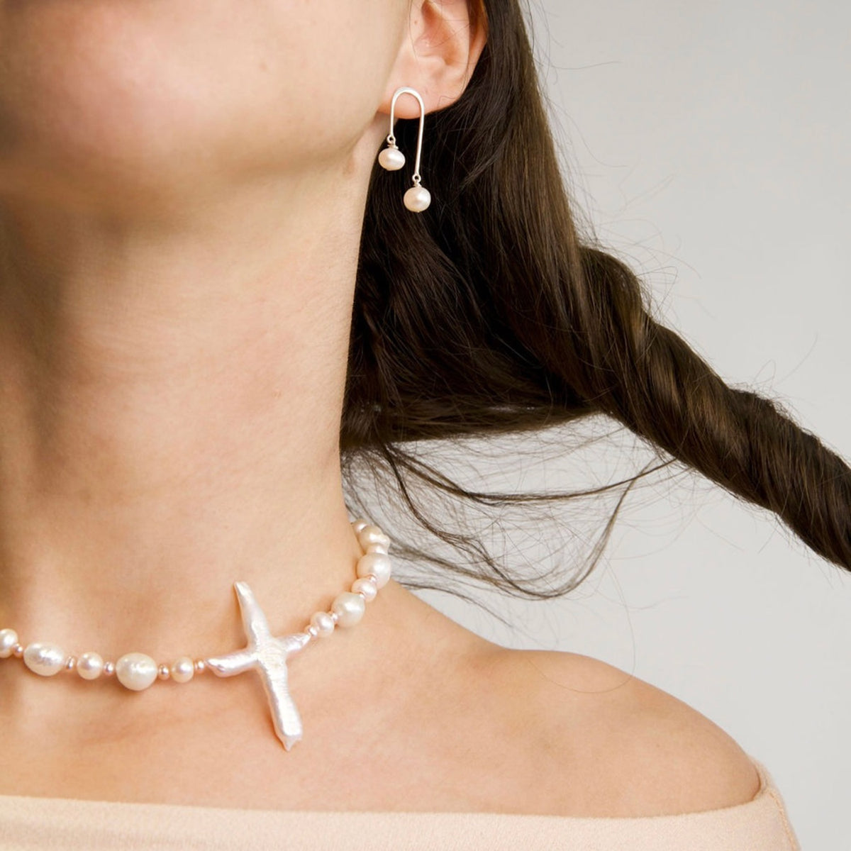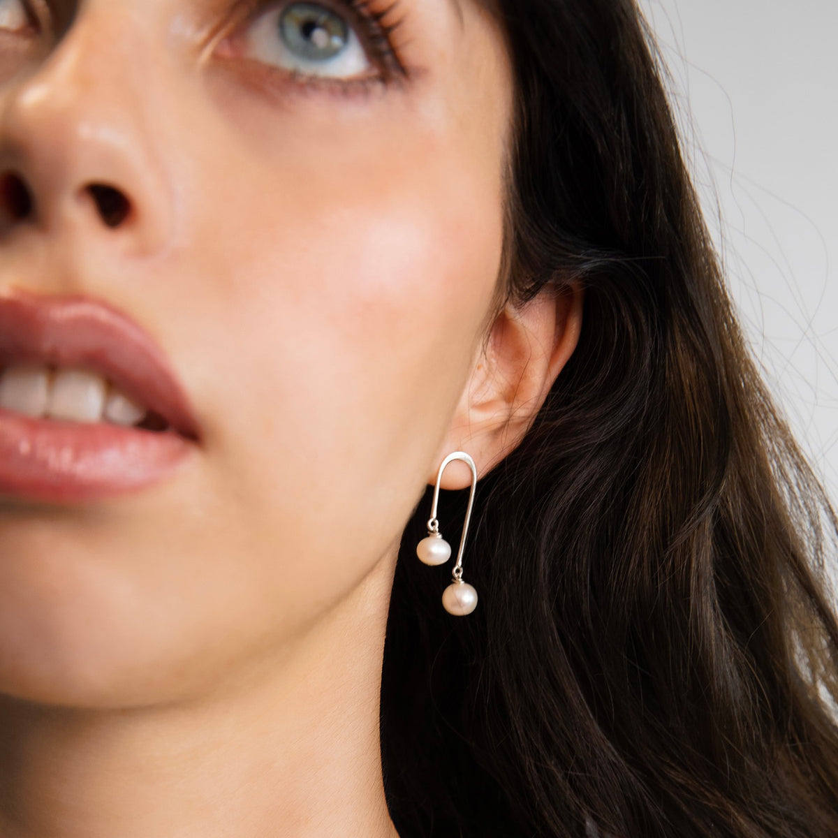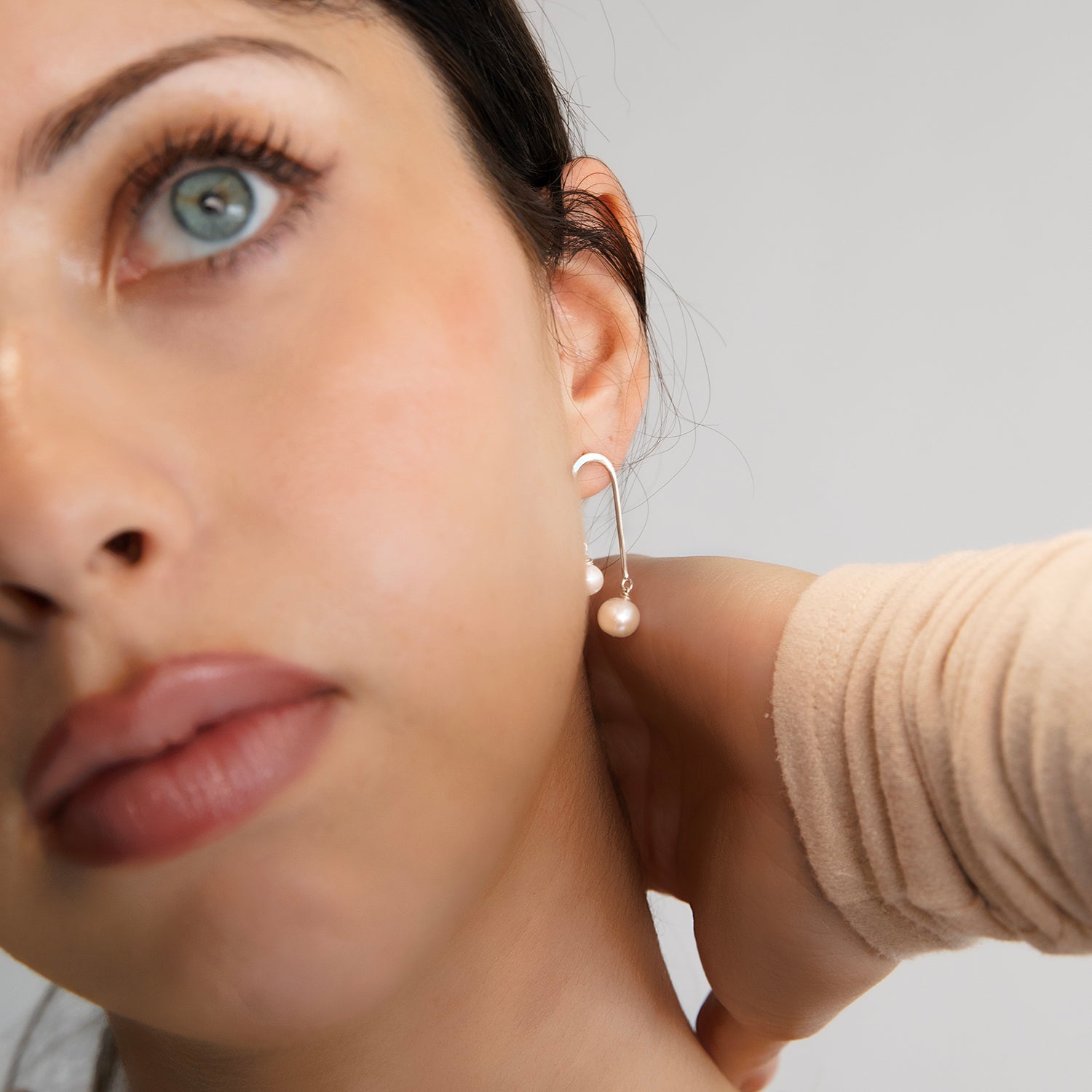 The Elsa's lightweight arch post shape is made with solid .925 Sterling Silver and highlights AAA-quality freshwater pearl drops. Discover the natural beauty of our freshwater pearls, each one distinctly unique with slight variations in color and size. No two pieces are exactly alike, making yours truly one-of-a-kind. Experience the craftsmanship of our jewelry, meticulously handcrafted using rare and delicate materials sourced from around the world.