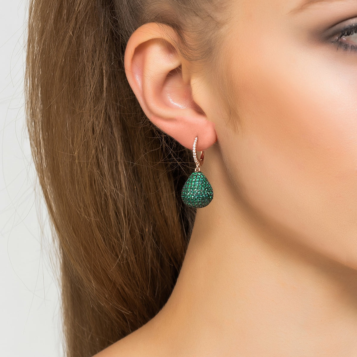 Valerie Pear Drop Gemstone Earring Rosegold Emerald