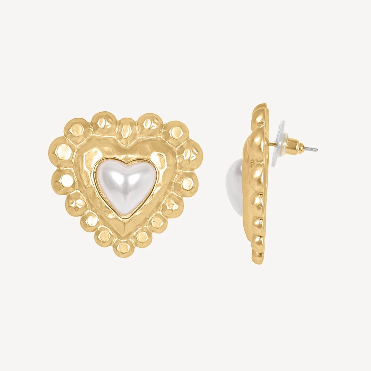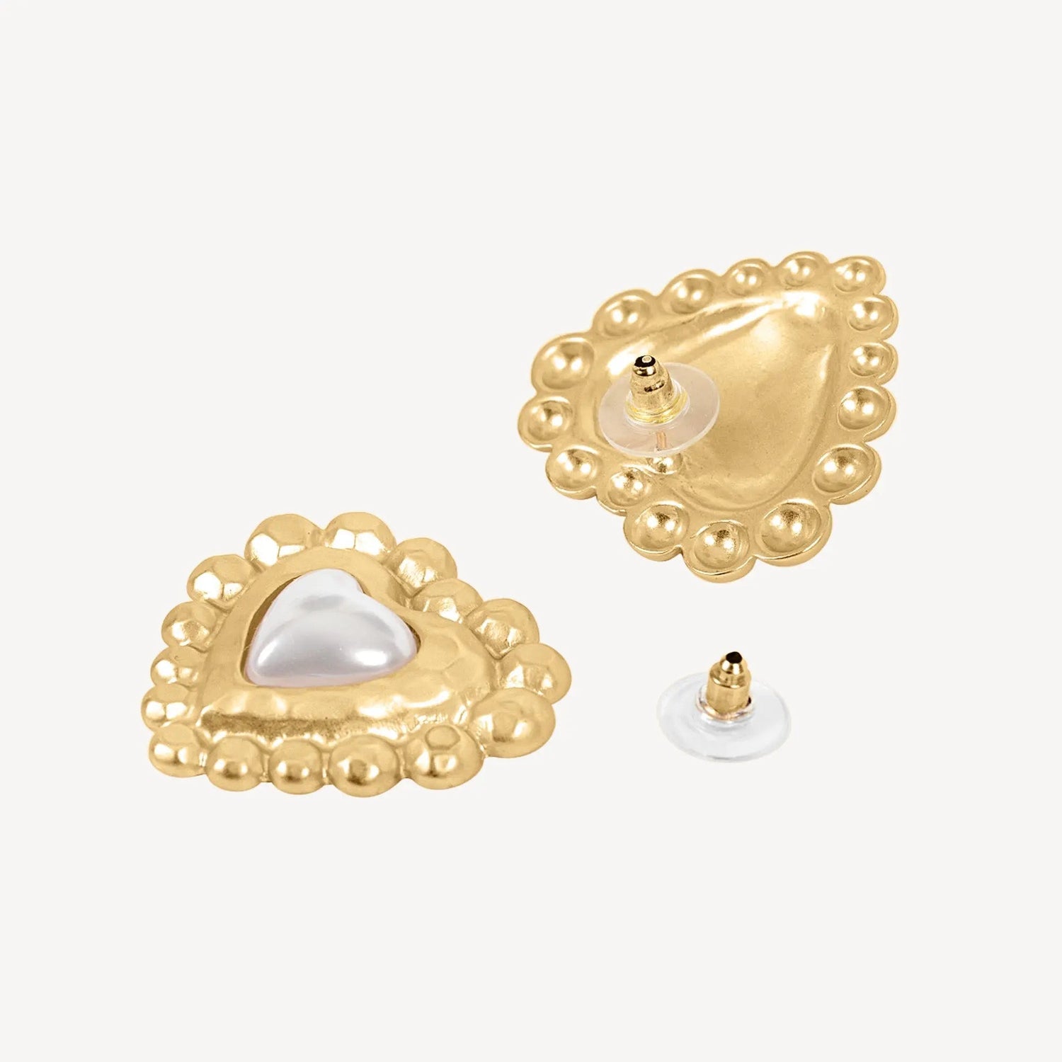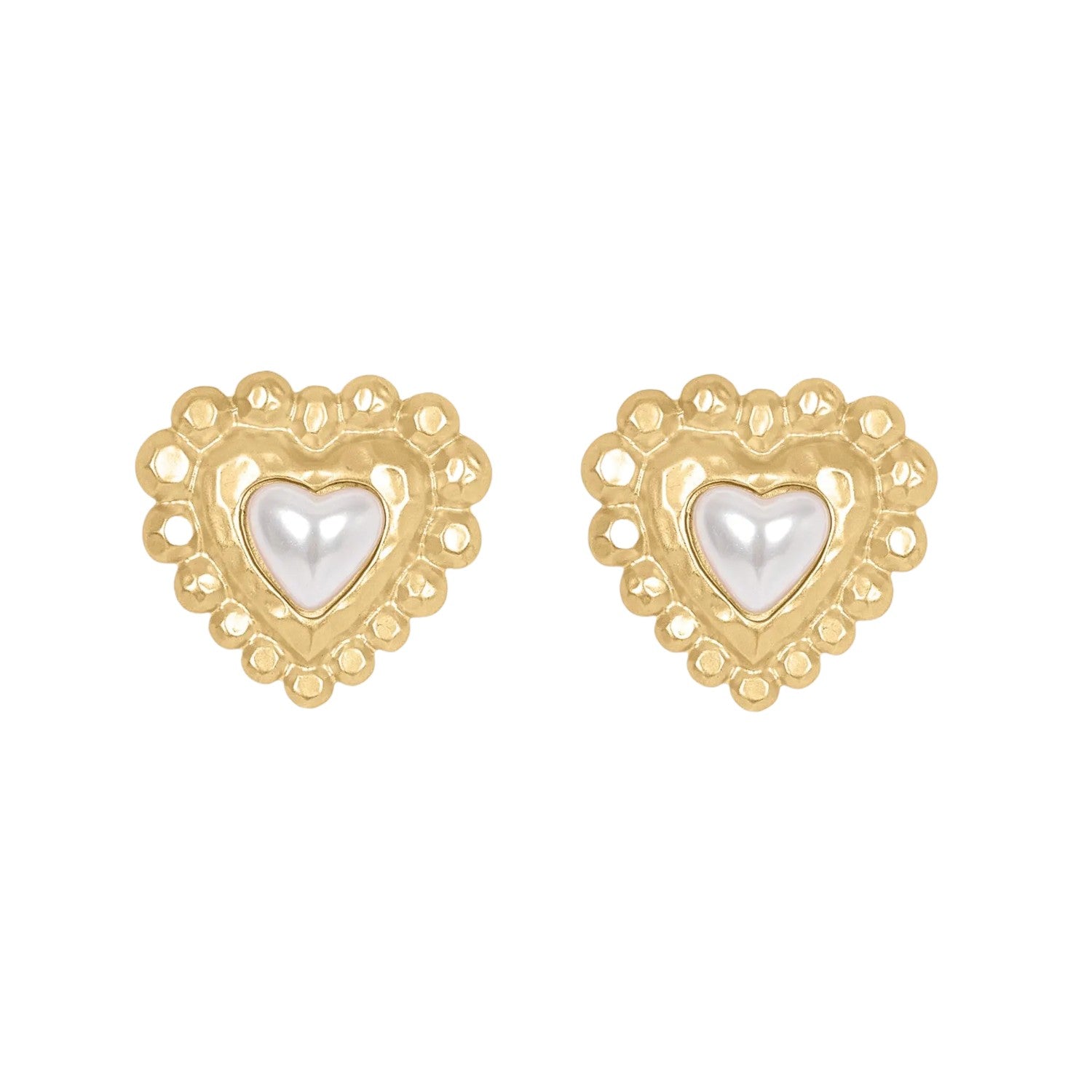 Embrace timeless elegance with Margot Bardot's Milou Heart Pearl Earrings, your perfect everyday signature piece. Crafted from durable stainless steel, these dainty earrings are adorned with two simulated pearls that beautifully highlight their elegant heart shape. Featuring a secure clip-in anchoring system, the Milou Heart Pearl Earrings come in a set of two pieces. Elevate your jewelry collection with these exquisite earrings, combining lasting quality and timeless