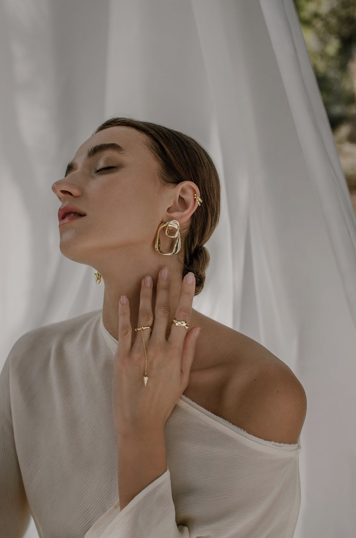 These Wave Earrings Mini Gold by Mishka are a sculptural tribute to the ocean’s ceaseless rhythm and the ebb and flow of human emotion. Their wavy circular form mirrors the serene dance of tides, embodying both nature’s elegance and the depth of inner sentiment. A unisex design, they carry a harmonious blend of motion and balance, perfect for those seeking wearable art that resonates with both strength and serenity.