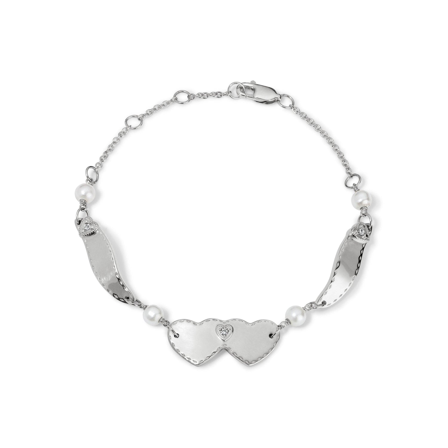 This Wings of Love Bracelet in Sterling Silver by Déclarer is a romantic ode to vintage double-heart jewelry from the 1960s. The two interlocking hearts form wings of affection, a symbol of love and unity. Embellished with Austrian crystals and glass pearls, it brings timeless sentiment and sparkling elegance to everyday wear.