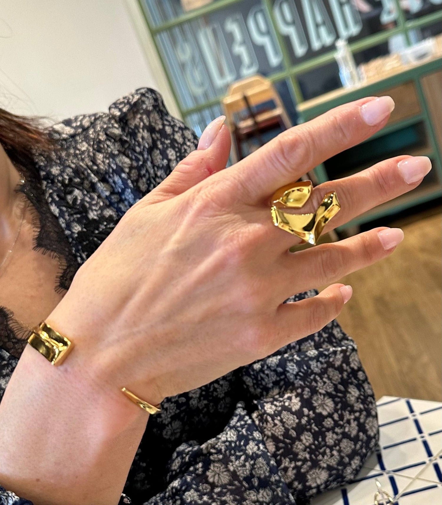 This Open Bangle Bracelet - Gold by Nicole Amato combines sculptural artistry with effortless wearability. Its asymmetrical form reflects light beautifully, while the hand-sculpted shape balances presence with comfort. Perfect worn solo or stacked, it’s a versatile piece that brings modern, bohemian elegance to every look.