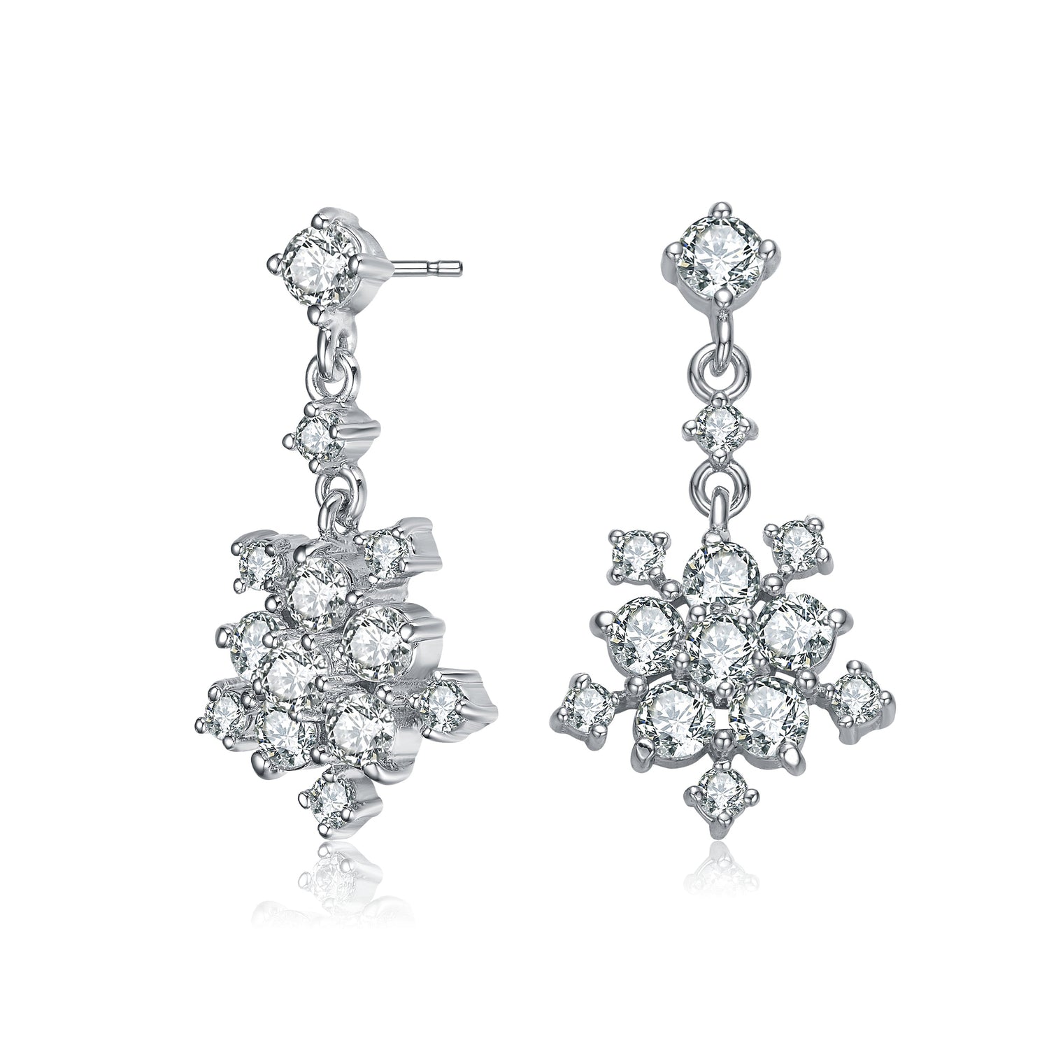 These gorgeous earrings feature a delicate flower drop design which is composed of a cluster of clear round Cubic Zirconia set in Sterling silver with Rhodium plated. The earrings post and trail are also accentuated with small clear round Cubic Zirconia. These earrings secure with butterfly clasp.