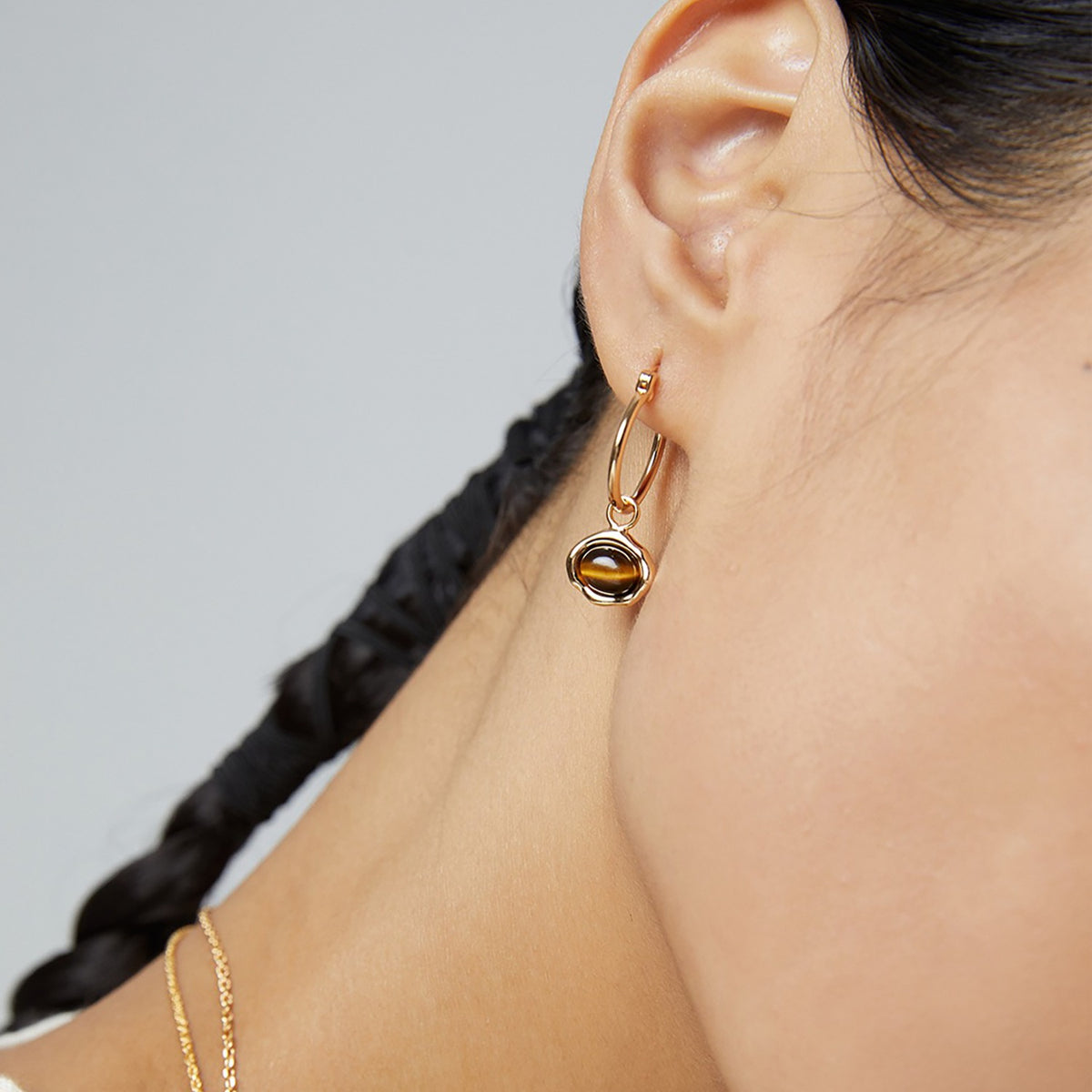 Brown Tiger Eye Stone Sterling Silver Hoop Earrings