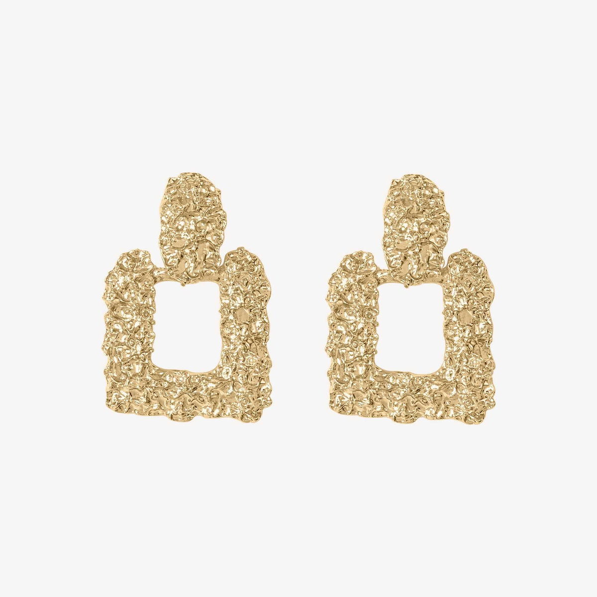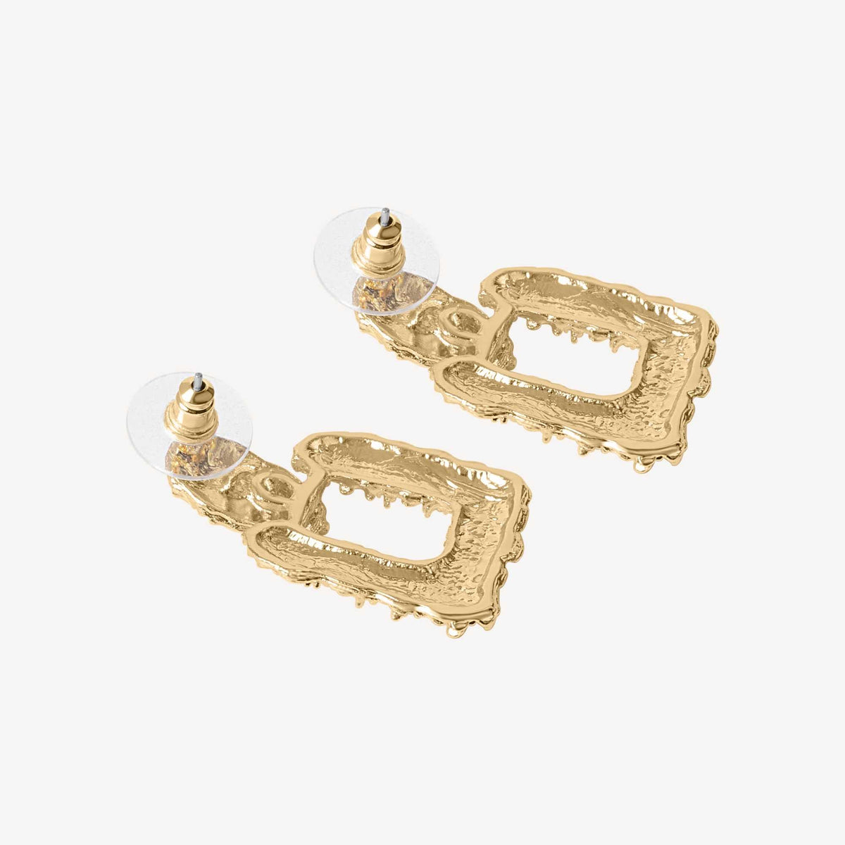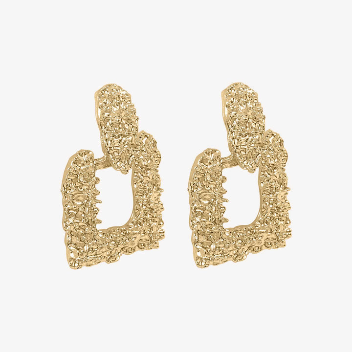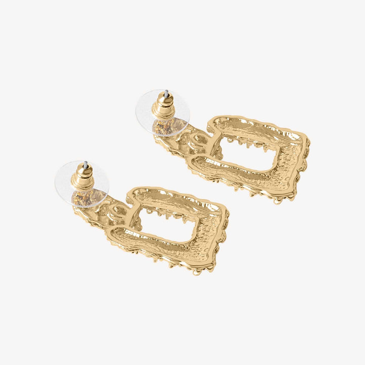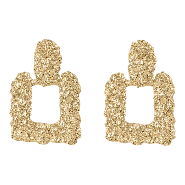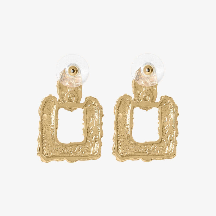 Enhance your style with Margot Bardot's Textured Stylish Earrings, blending minimalism with boldness. Crafted from nickel-free aluminium alloy, these earrings feature a unique design with a square-shaped drop dangling from a teardrop-shaped earpiece, adorned with intricate texture for added depth.