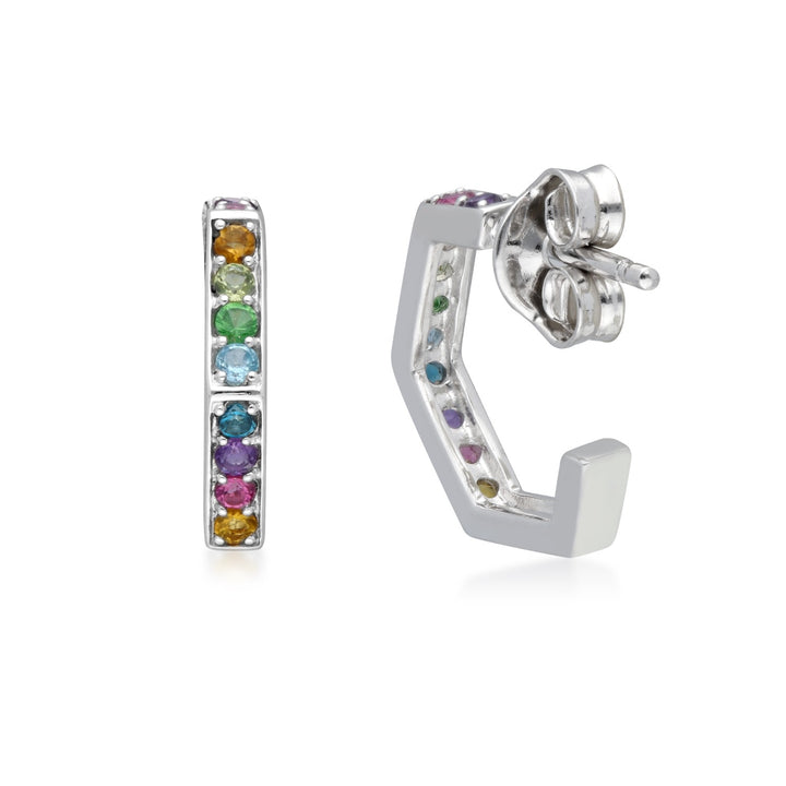 Rainbow Gems Hex Hoops In Sterling Silver