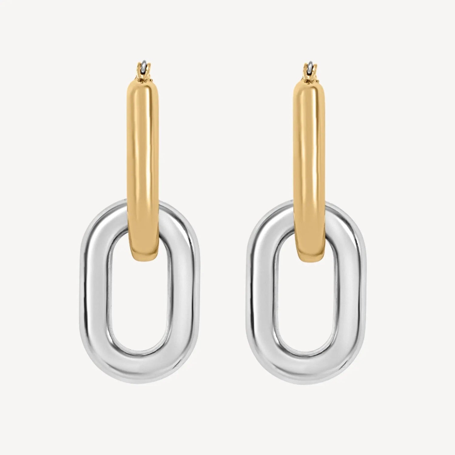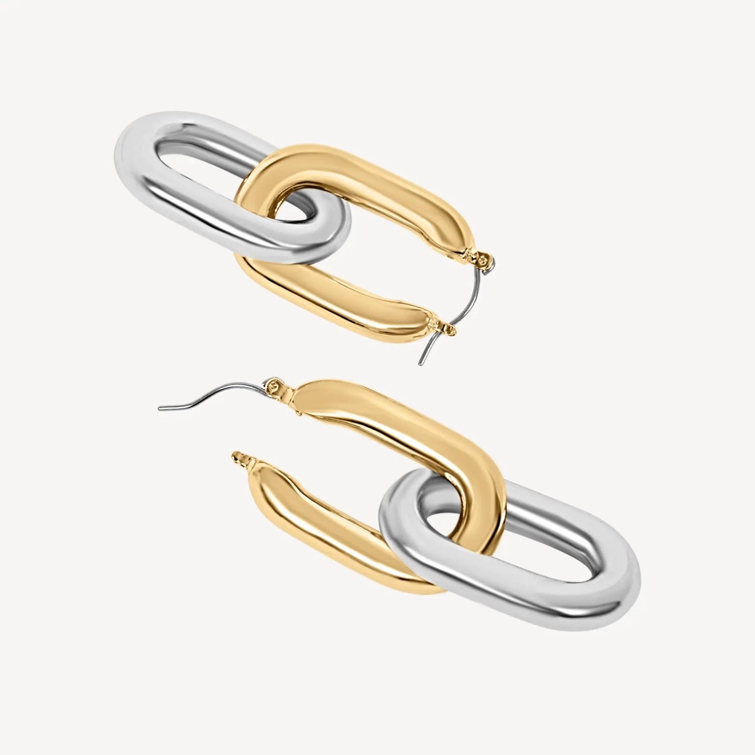 Introducing Margot Bardot's Linked Earrings, where elegance meets edginess in a seamless blend of high-polish gold and silver finishing. Complete with a 365-day warranty, these earrings are not just stylish but also backed by durability and quality assurance. Elevate your style effortlessly with Margot Bardot's Linked Earrings—a must-have addition to your jewelry collection.