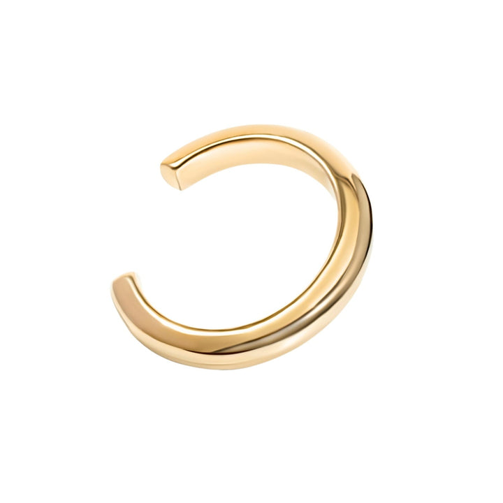 This bracelet is a modern cuff crafted from an unspecified material with gold plating. It is hypoallergenic.