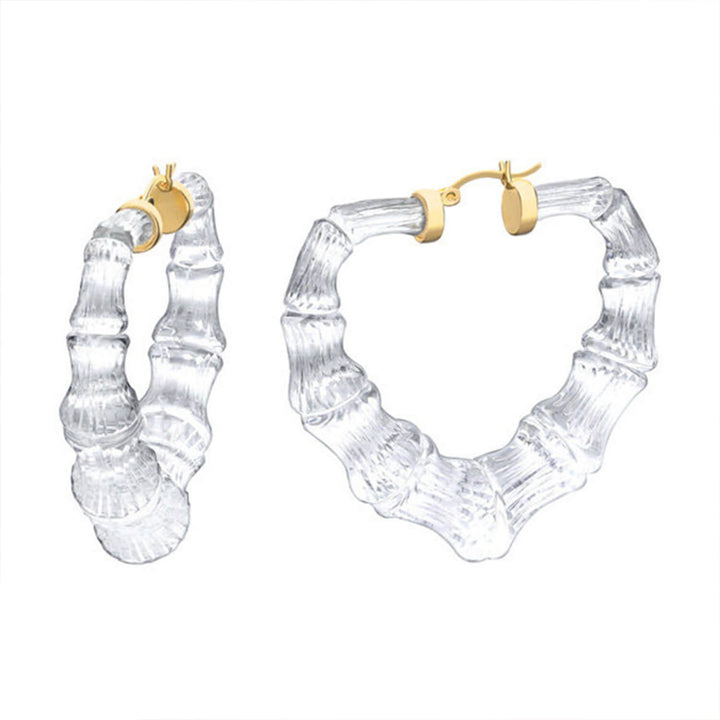 Clear Heart Bamboo Hoop Earrings