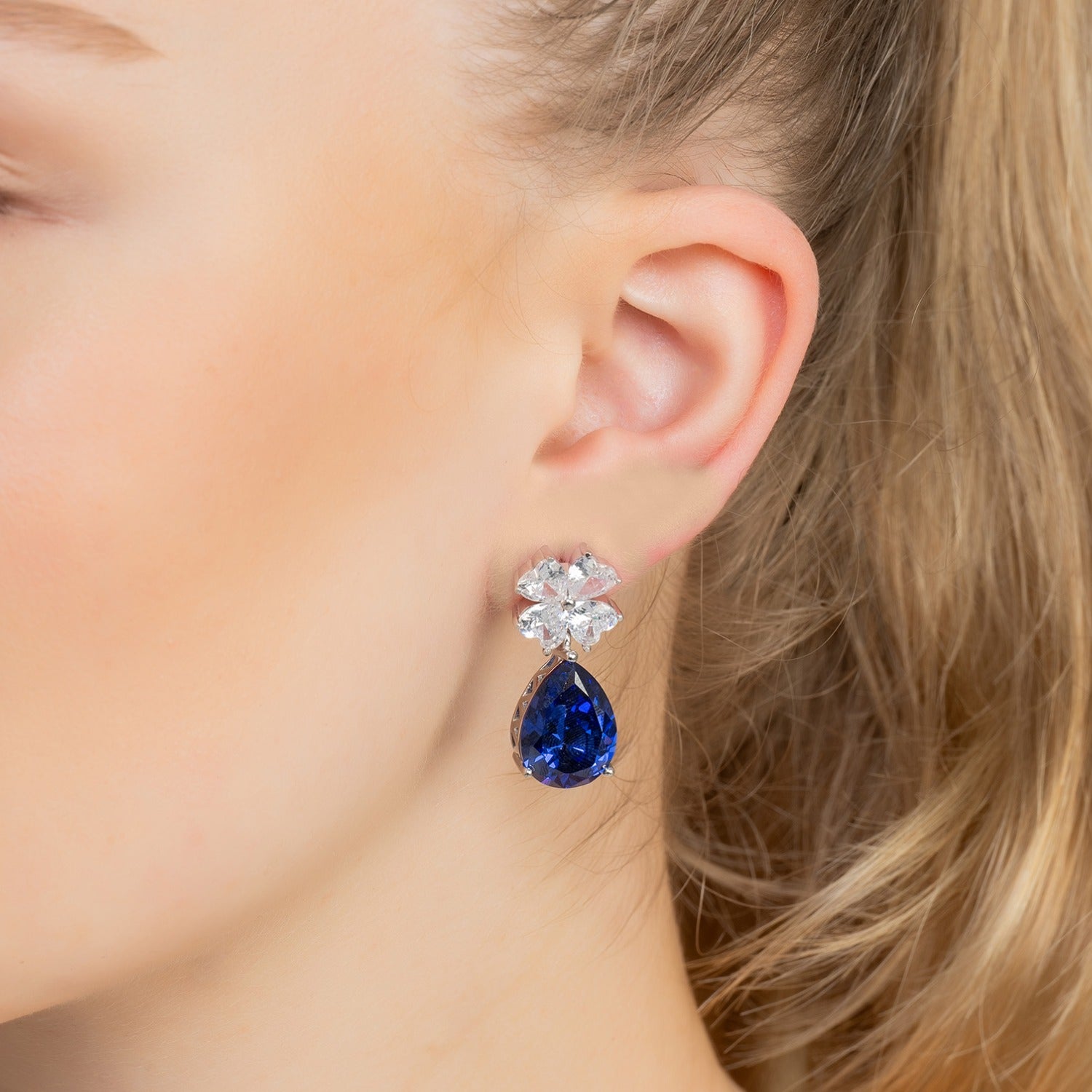 Introducing Victoria Teardrop Earrings - the perfect way to add a little sparkle to your day-to-day look. Lab-grown Tanzanite gemstones, these earrings are truly a sight to behold. Their captivating teardrop shape set within an intricate fretwork setting makes for an eye catching addition to any ensemble. Embellished with shimmering simulated diamonds in a clover flower design, you'll have all eyes on you - not that you need it! Tanzanite is a beautiful gemstone. The captivating blue and purple hues of this gemstone are believed to represent wisdom, intelligence, truth and spiritual insight. It is thought to bring a sense of joy and peace, making it the perfect gemstone for taking a moment out of your day to relax and reflect on life.