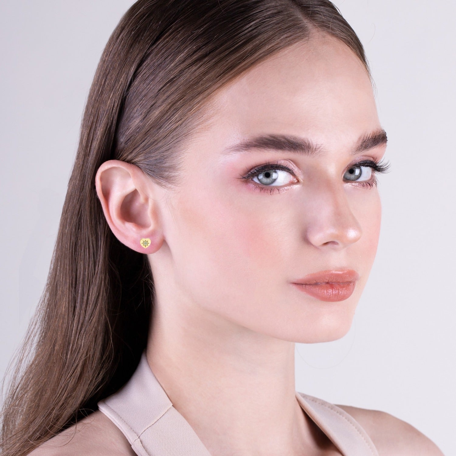 Ecfewtm The Liberator Peridot Heart Stud Earrings In 9Ct Yellow Gold