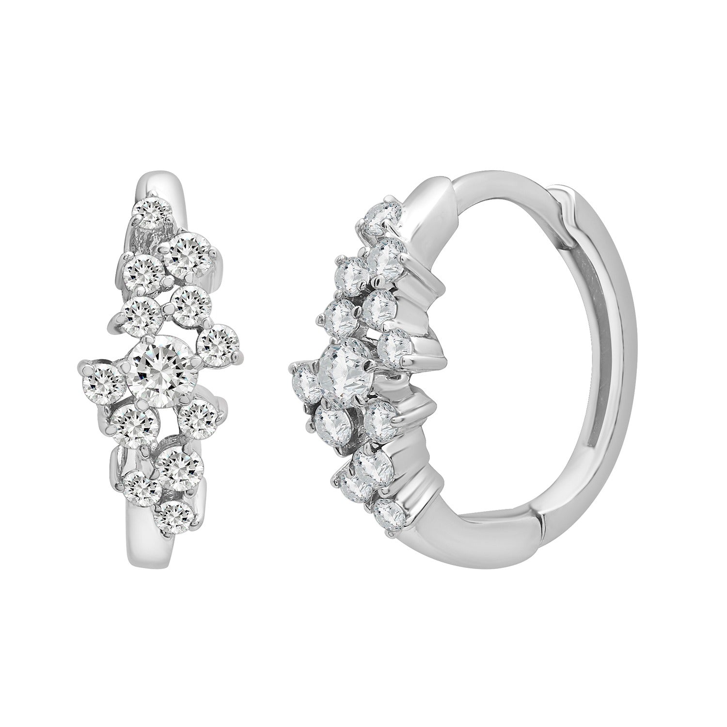 Add some class to your look with these scattered diamond mini hoop earrings. A cluster of diamonds are scattered on the 14K white gold hoop earrings to create a timeless look. Designed in New York.