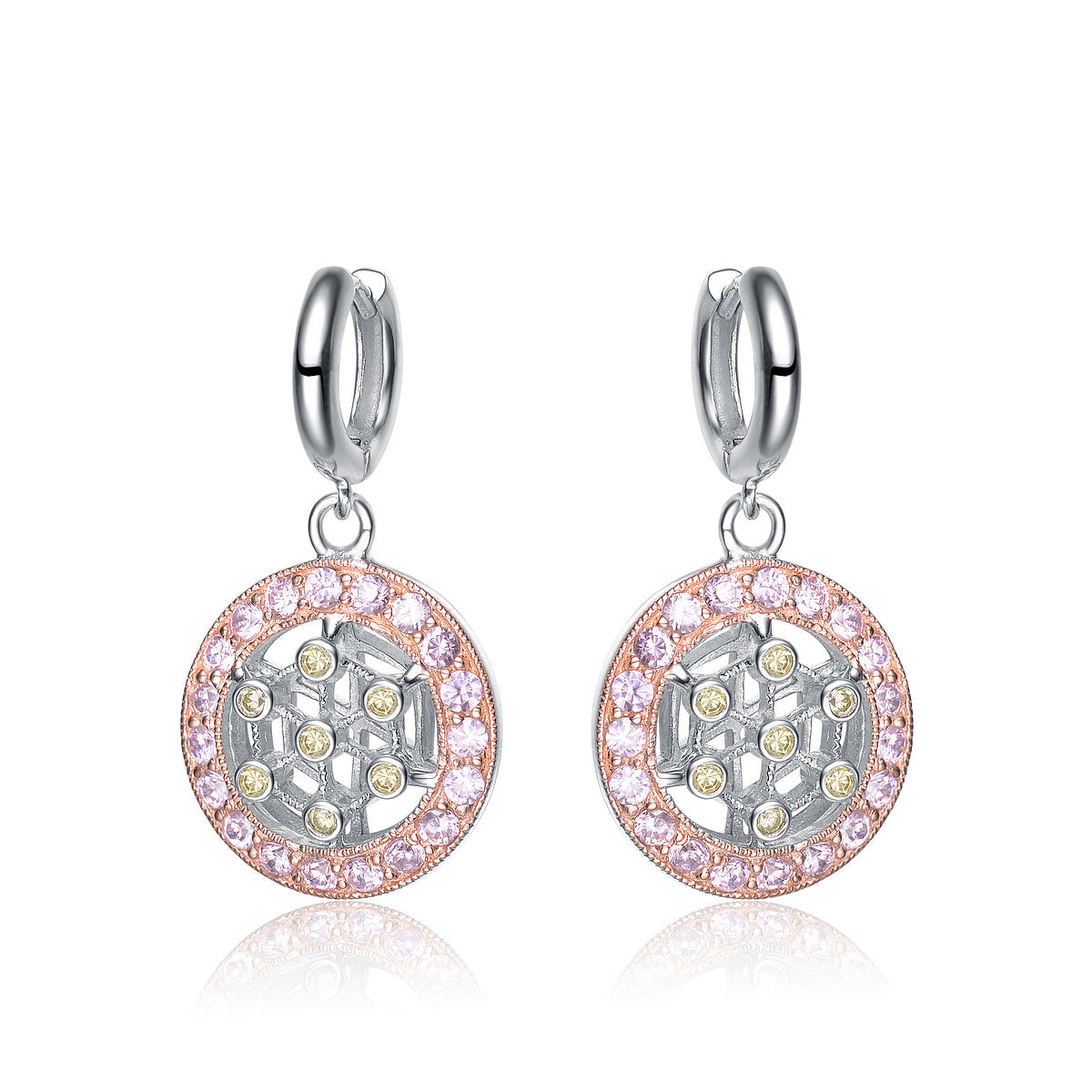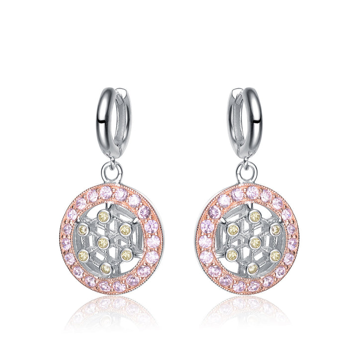 These marvelous earrings boast simplicity and grace by including a halo of pink stones around a pave cluster of cubic zirconias. This timeless sterling silver piece won't be going out of style any time soon.
