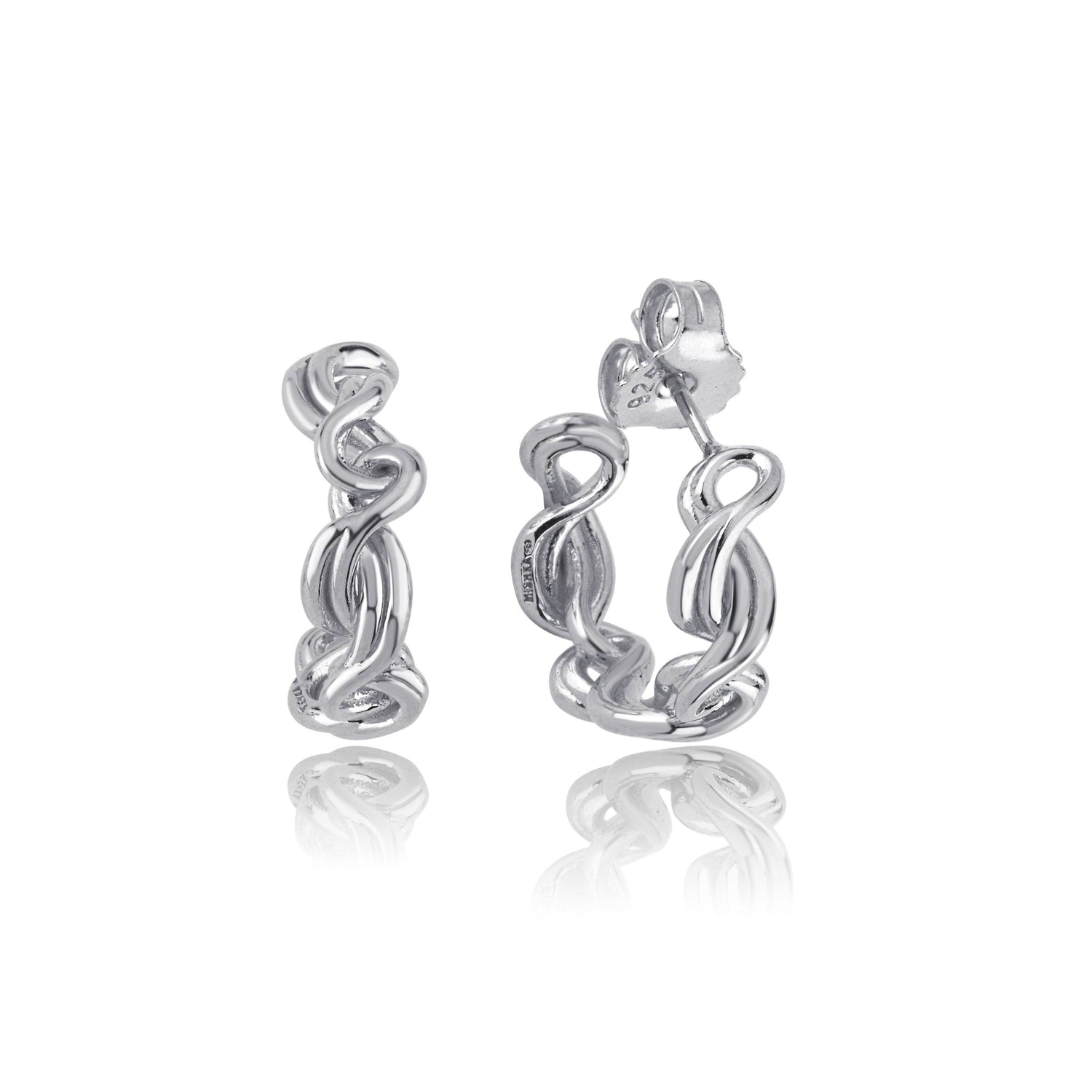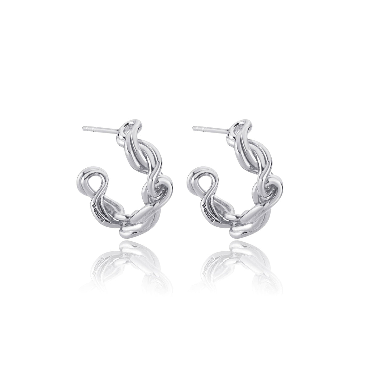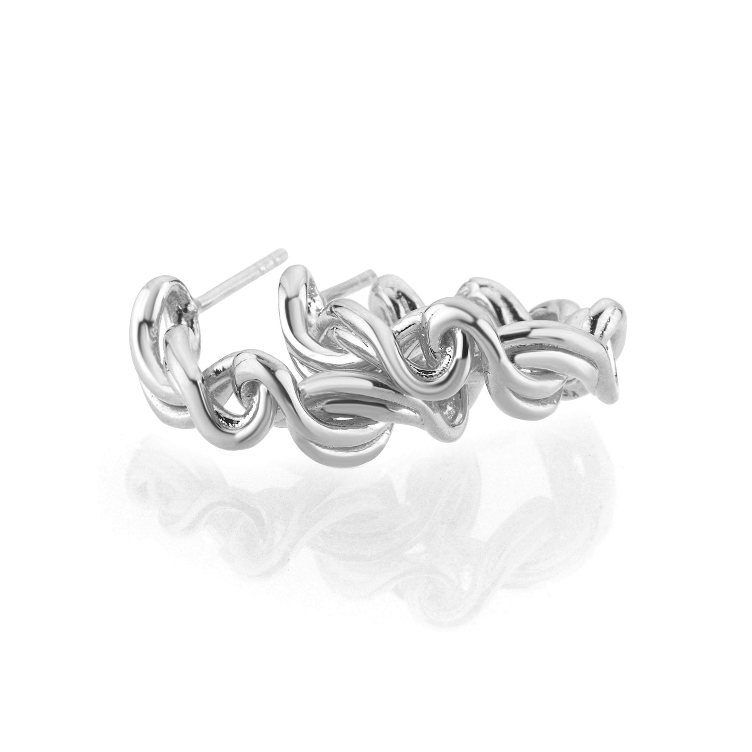 Made in 925 sterling silver with polished finish. Sculptural twisted hoop design. Unisex style.