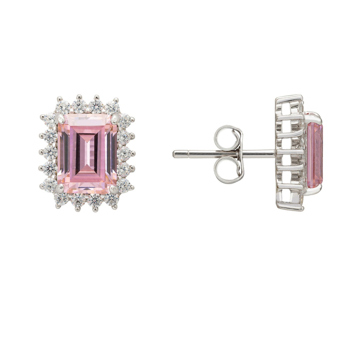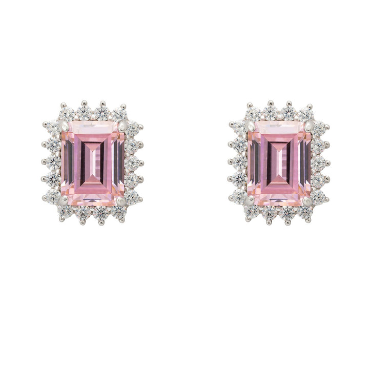 Introducing the Elena Gemstone Stud Earrings. Centre stage in each stud is a rectangular lab-created Morganite, a gem loved for its gentle pink hues and often associated with divine love. Framed by cubic zirconia creating a luxurious look that makes an eye-catching addition to any jewellery collection. These versatile earrings will add a touch of romance to your workday wardrobe or be your go-to accessory for special evenings out.