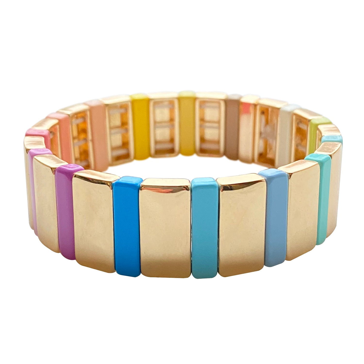 This bracelet is handmade with colorful enamel beads and gold accents, and it features an adjustable design to fit any wrist comfortably.