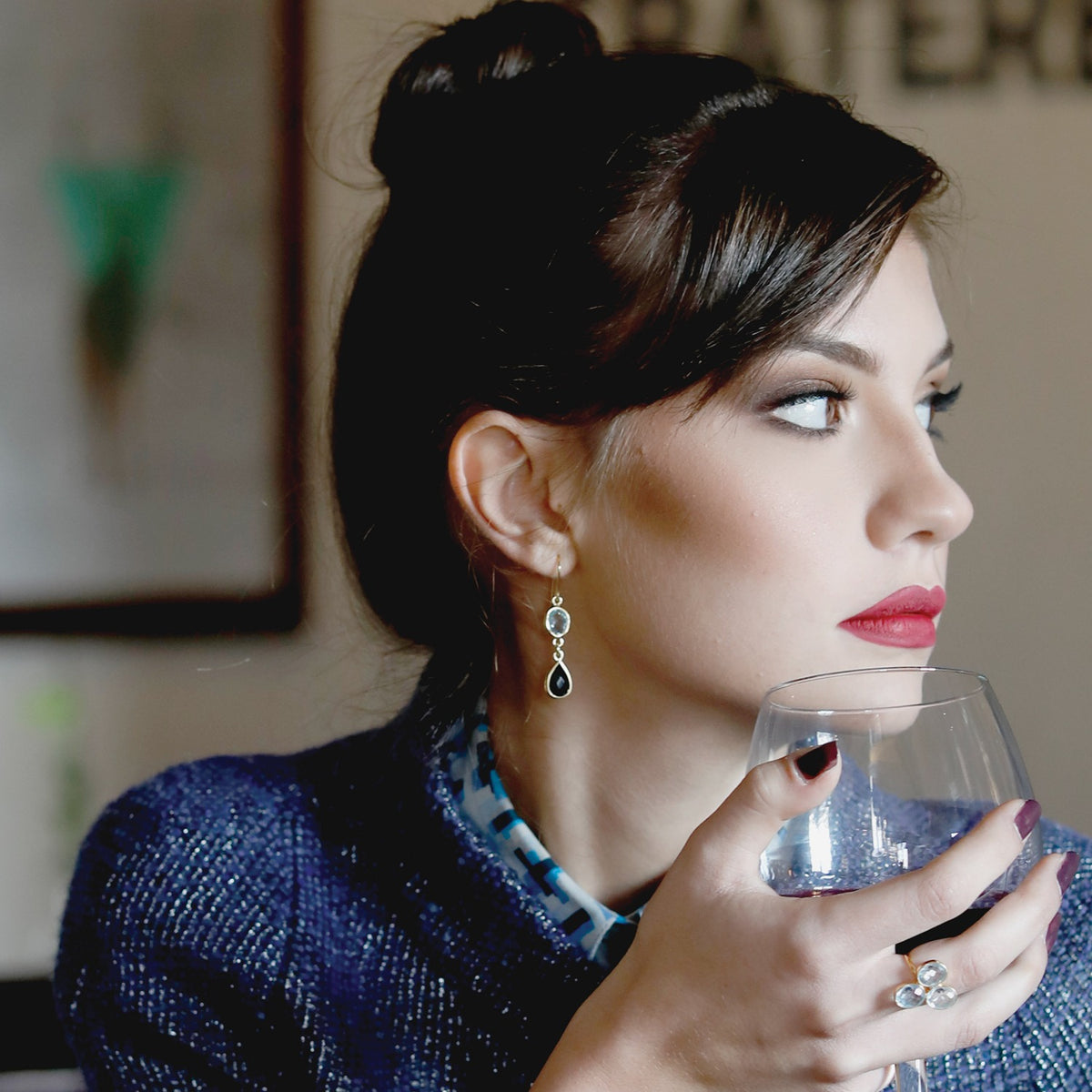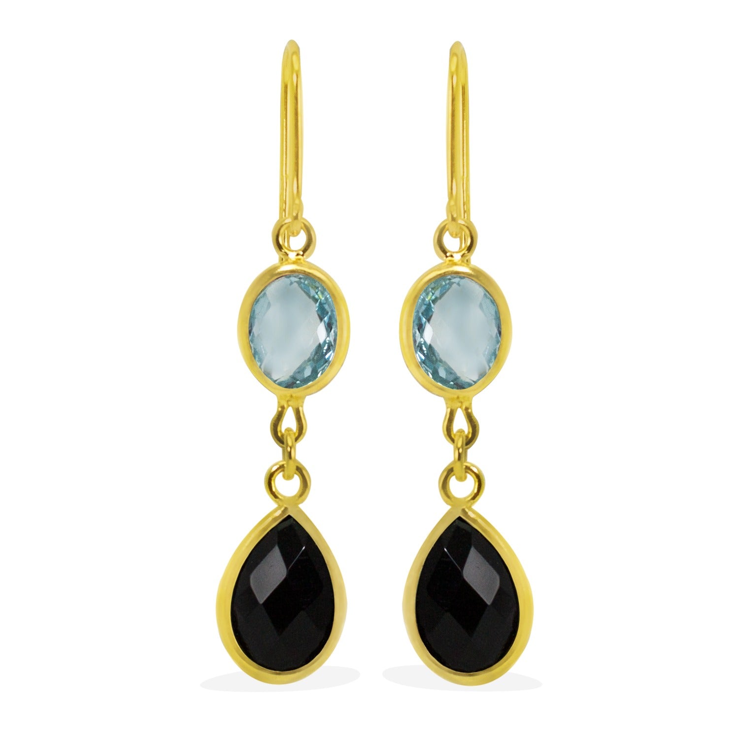 Handmade from 18-karat gold vermeil in our own workshops in Italy, these delicate earrings by Vintouch are set with multifaceted pale sky blue topaz and black onyx stones that fall just below your jawline. They're elegant and simple enough for day or night. The Amalfi earrings are inspired by the colors of the Amalfi coast seasides.
