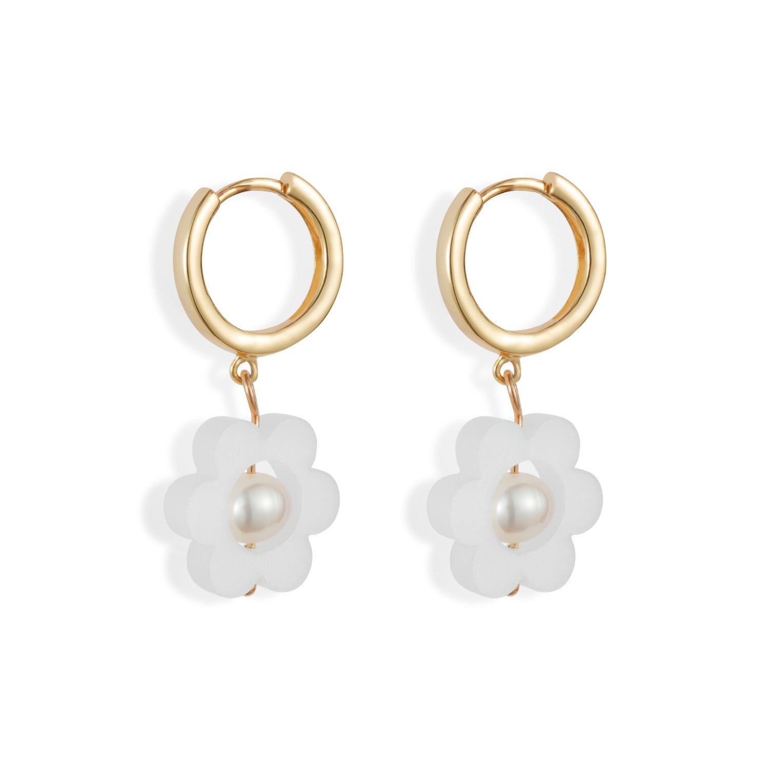 Flower Pearl Huggie Earrings