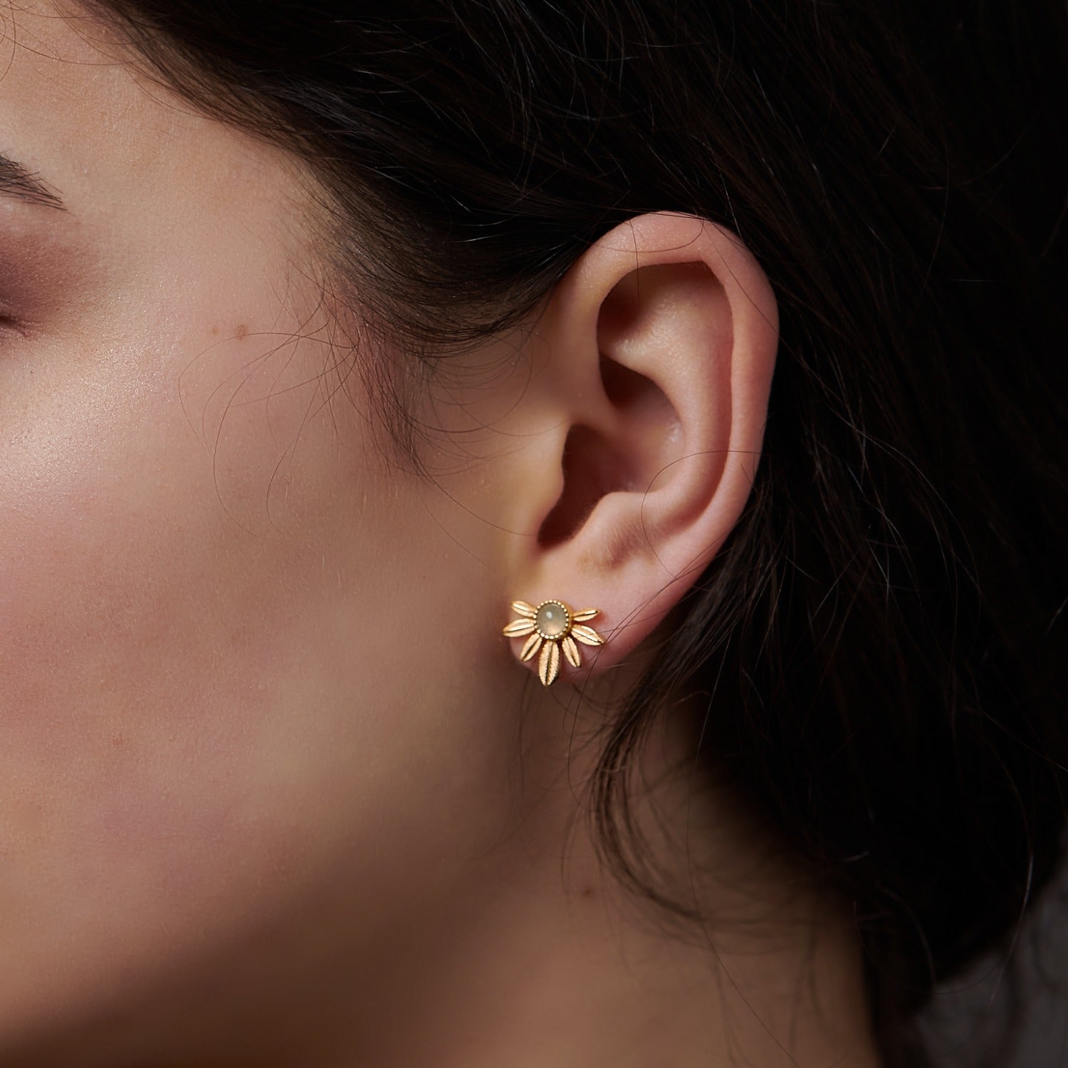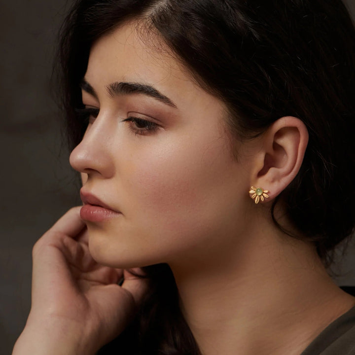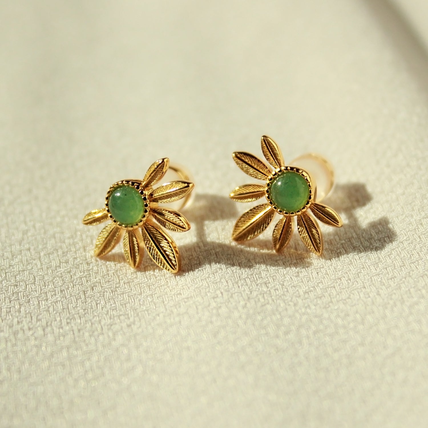 Named after the Ancient Egyptian representation for royalty, the beautiful and naturalistic Uraeus earrings will certainly make you feel like a queen. Pairing a gorgeous green stone with intricately detailed leaves, this pair radiates organic elegance. Manifesting bountiful harvests and sunny days, these earrings encapsulate the radiant essence of summer.