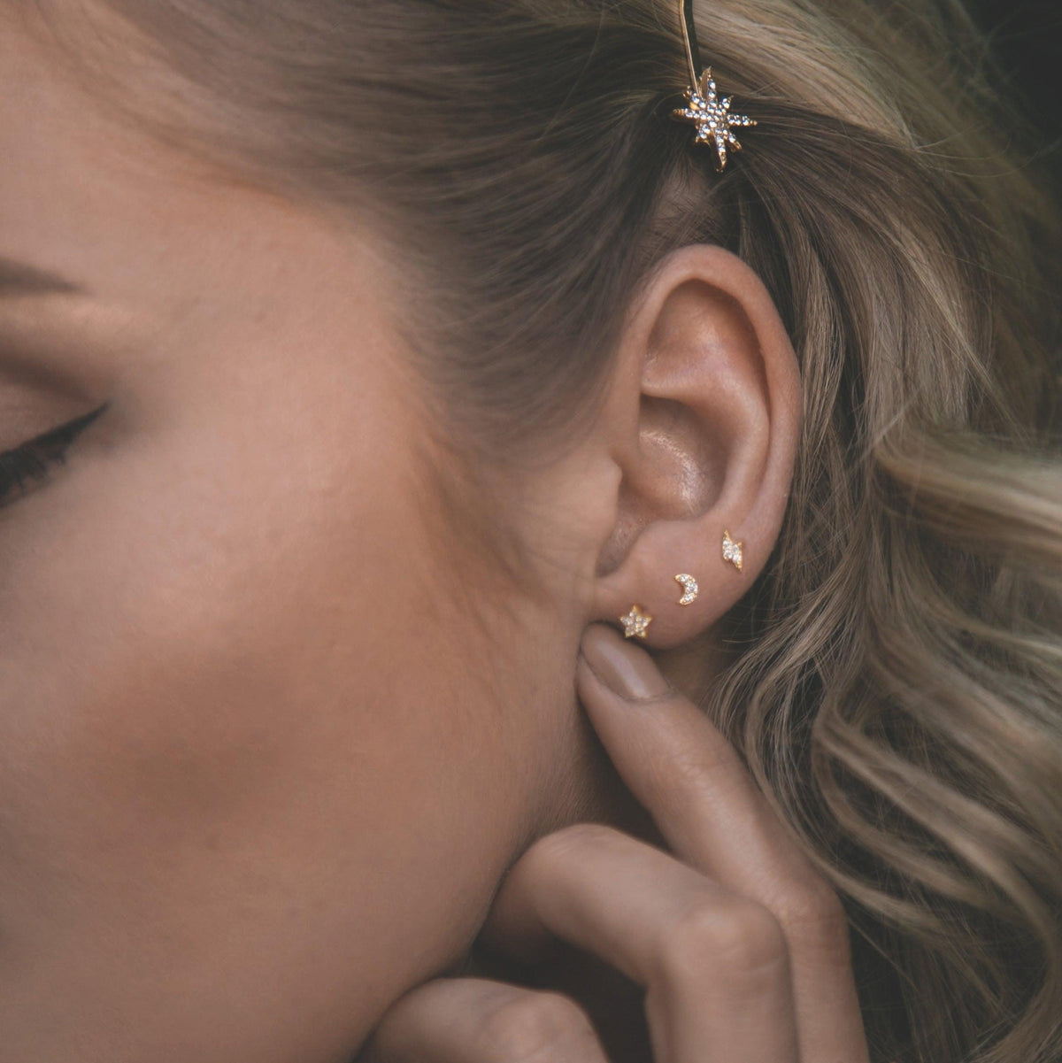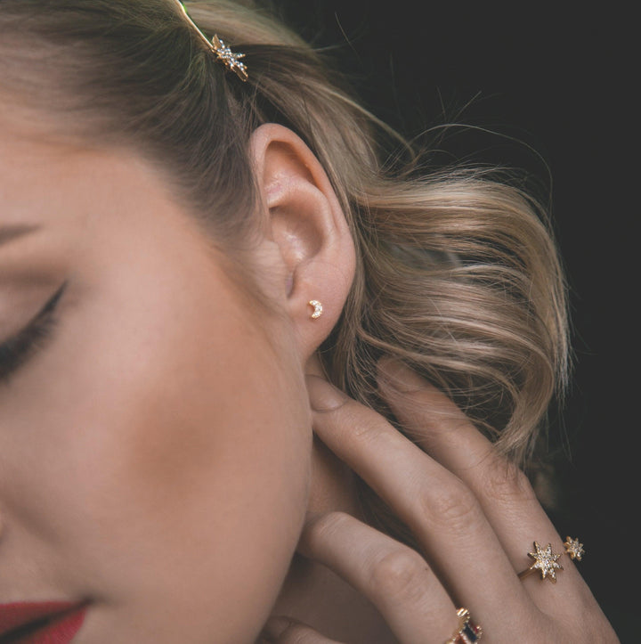 Set of 3 pairs of studs. Never silence her storm. Never stop looking up to the sky with our pretty little set of charm studs. Perfect for layering or mixing & matching.