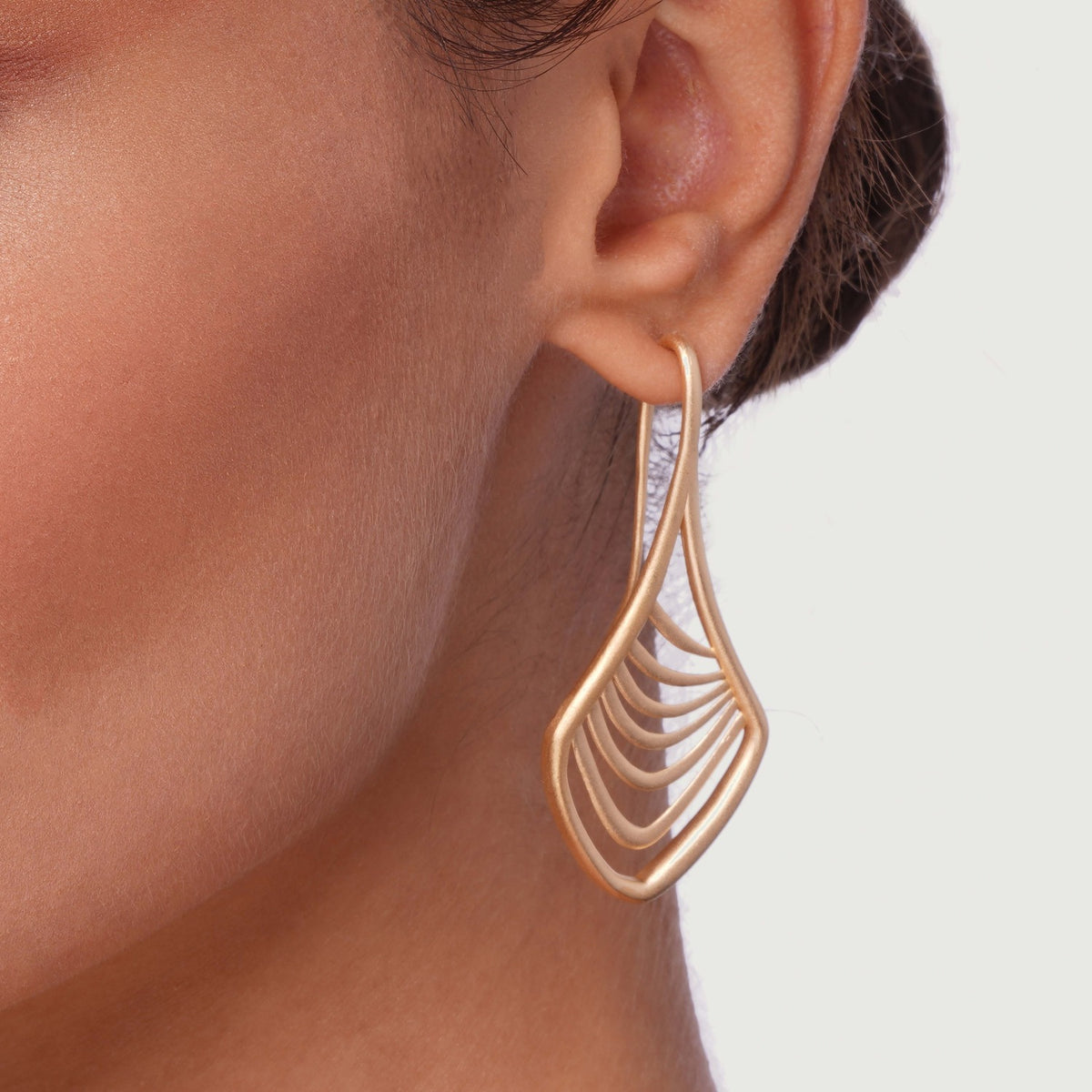 With a playful and striking design, these earrings cannot be overseen. Their wavy lines remind of the natural world viewed by a modern eye.