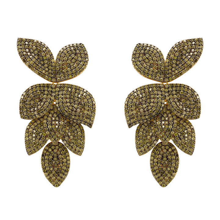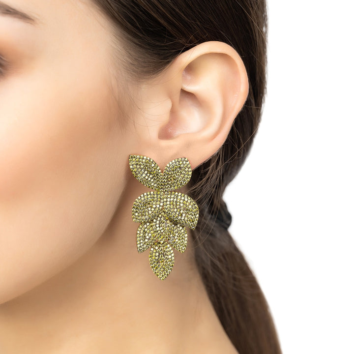 Petal Cascading Flower Earrings Gold Peridot Cz